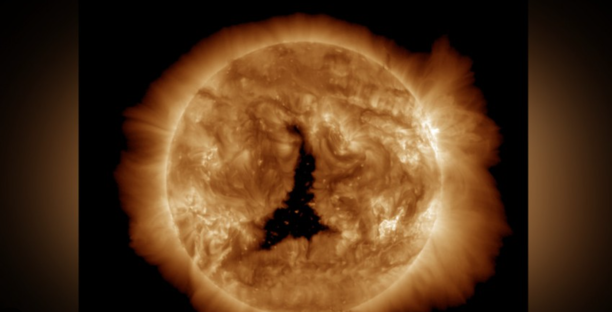 Según varios medios científicos, se trata de un agujero coronal, que también estuvo lanzando potentes corrientes de radiación inusualmente rápida, conocidas como viento solar, directamente hacia la Tierra, según recoge DW.
