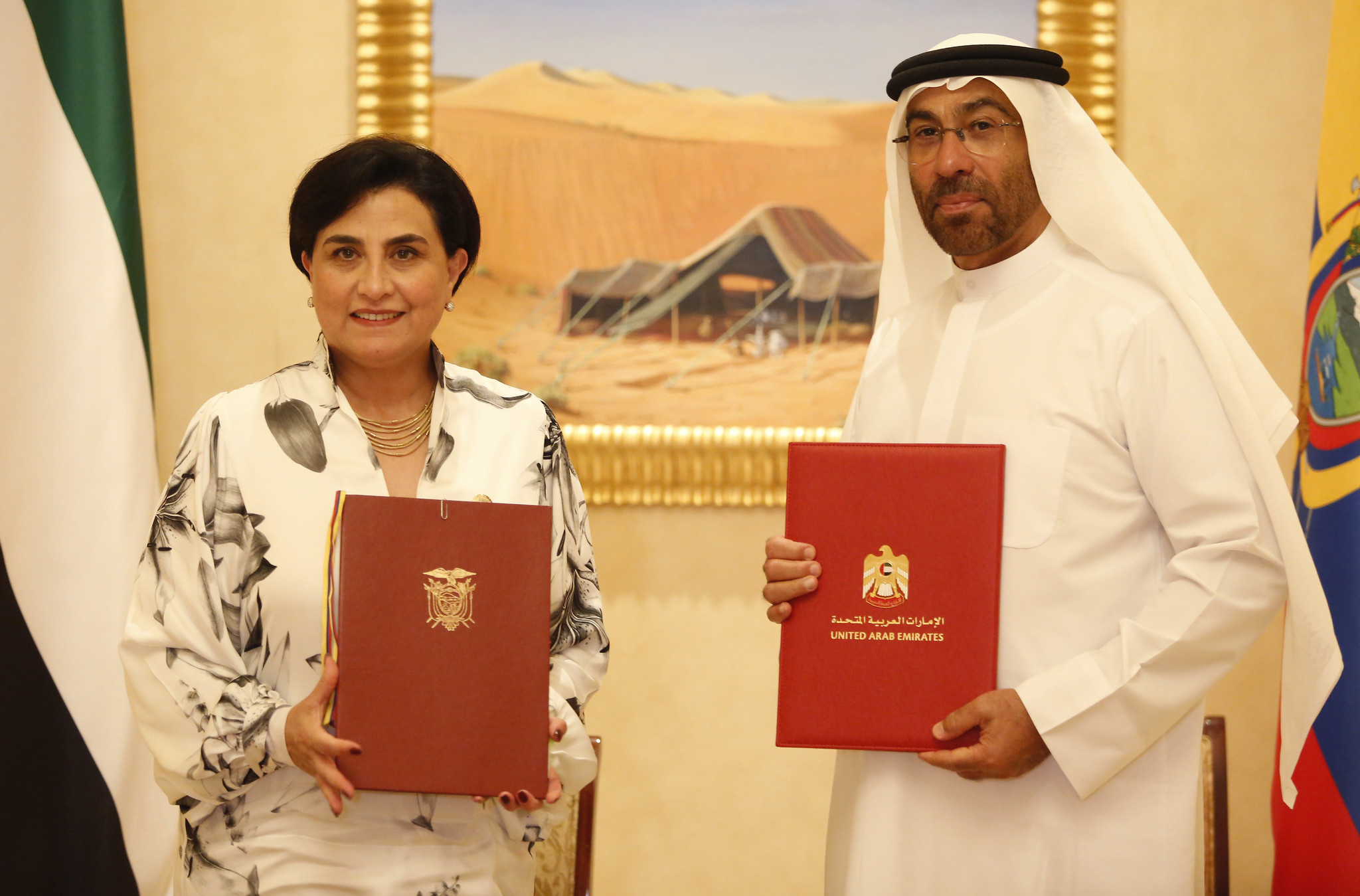La firma se llevó a cabo durante la visita oficial del presidente Daniel Noboa a Emiratos Árabes Unidos, donde se busca ampliar la agenda de cooperación bilateral en distintos sectores estratégicos.