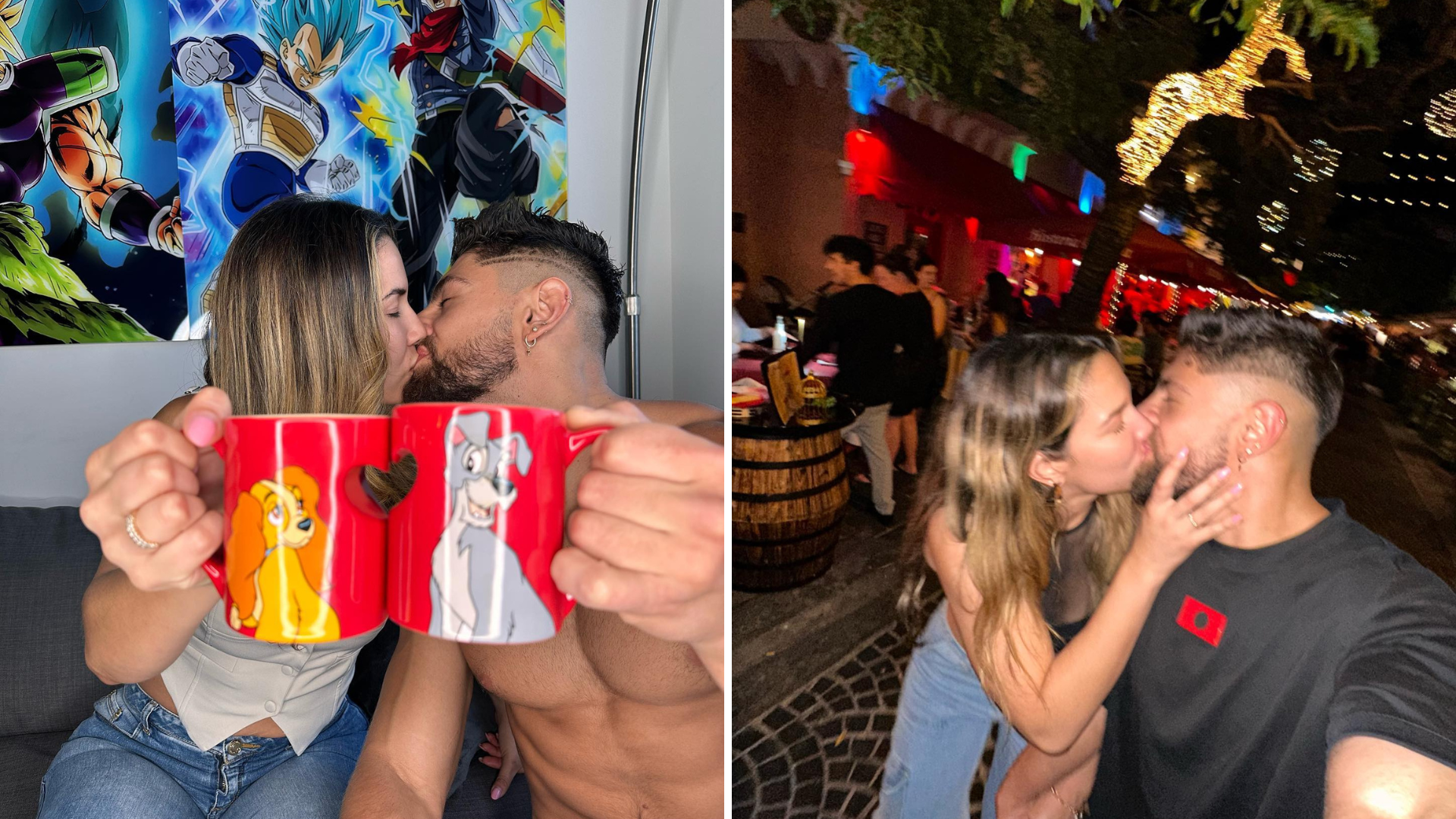 El publicación es un carrusel de fotos titulada “La Dama y el vagabundo” donde los enamorados aparecen dándose besos y posando con jarrones de la romántica película de perritos.