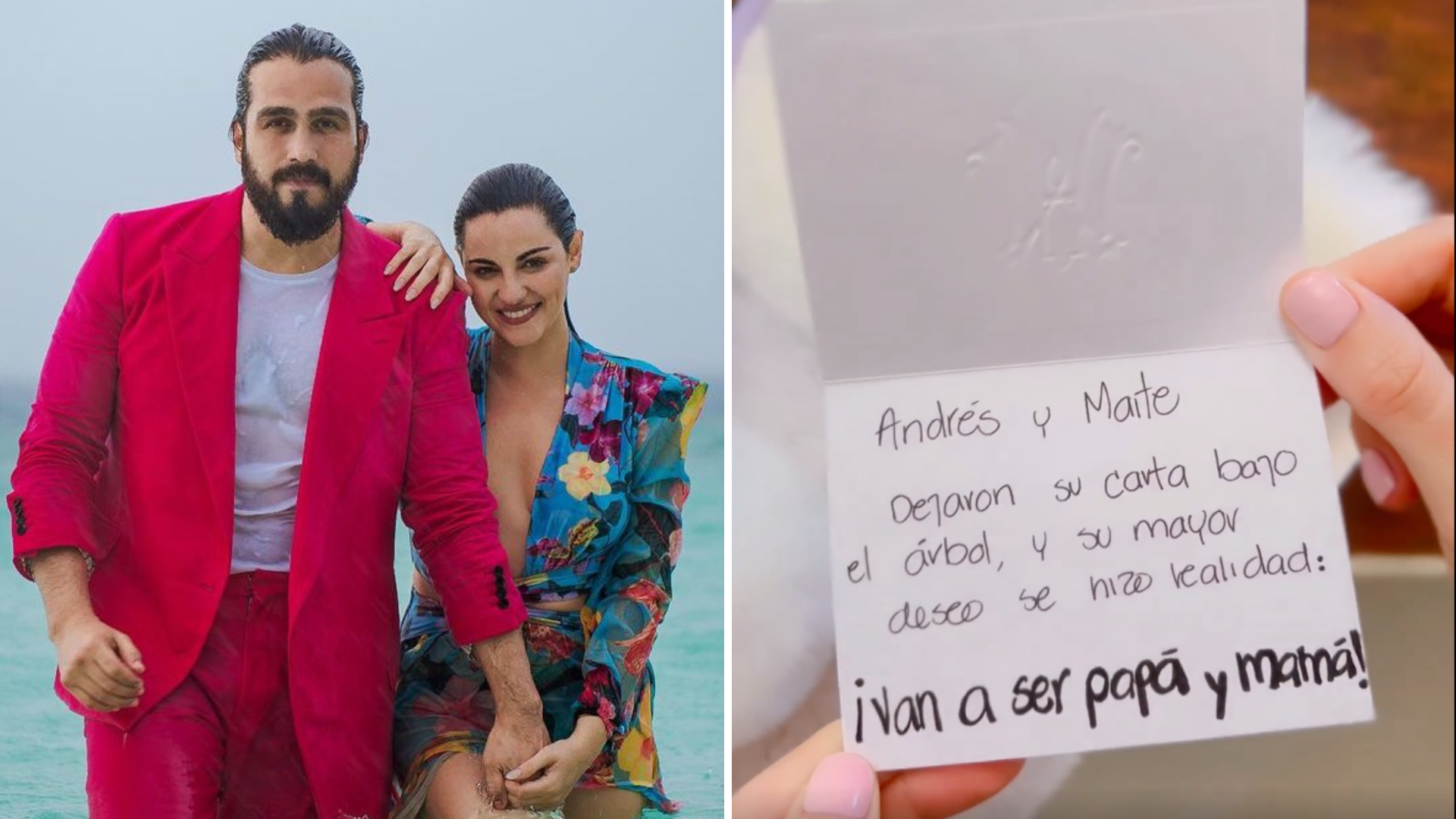 En otra imagen se puede ver una pequeña carta en la que se lee: “Andrés y Maite dejaron su carta bajo el árbol y su mayor deseo se hizo realidad: ¡Van a ser papá y mamá”.