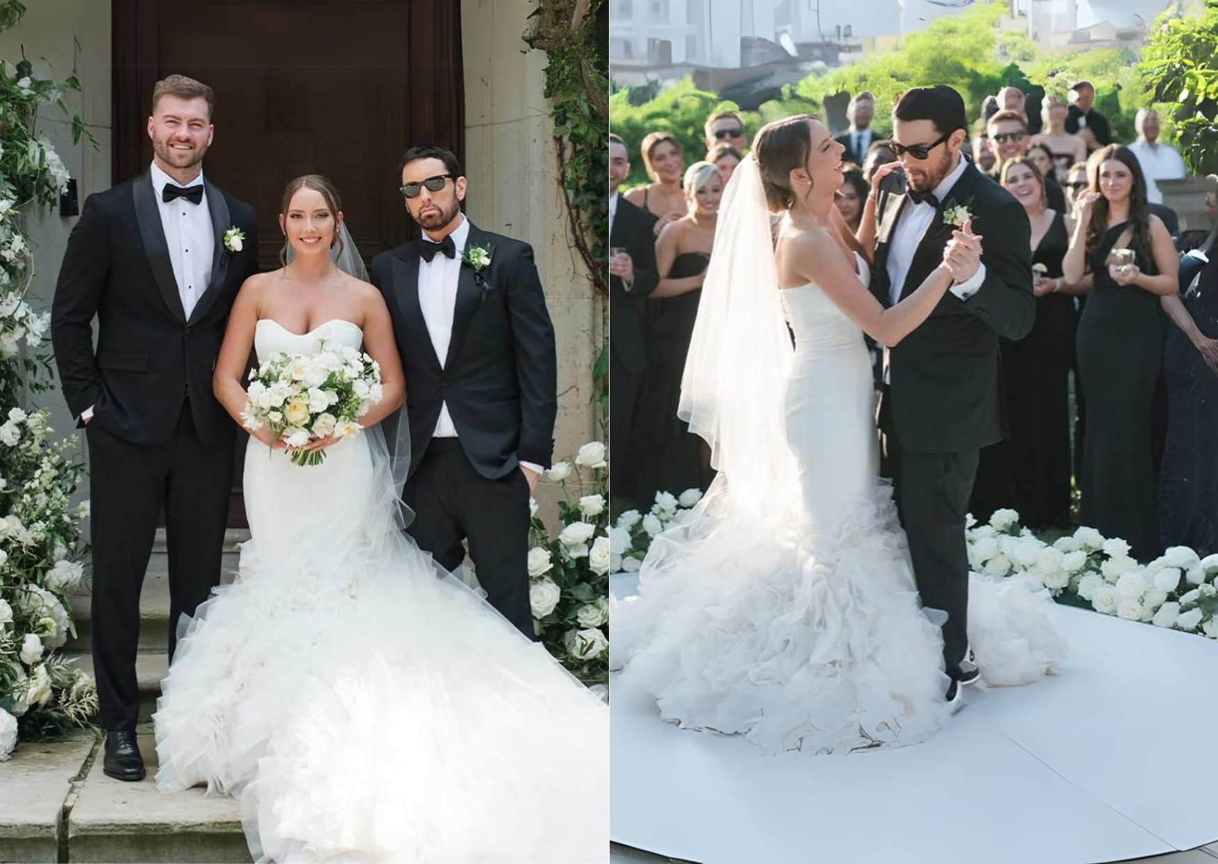Eminem, de 51 años, compartió un tierno momento con su hija de 28, haciéndola girar alrededor de la pista de baile ante la mirada de los invitados, vestidos con el clásico atuendo negro.
