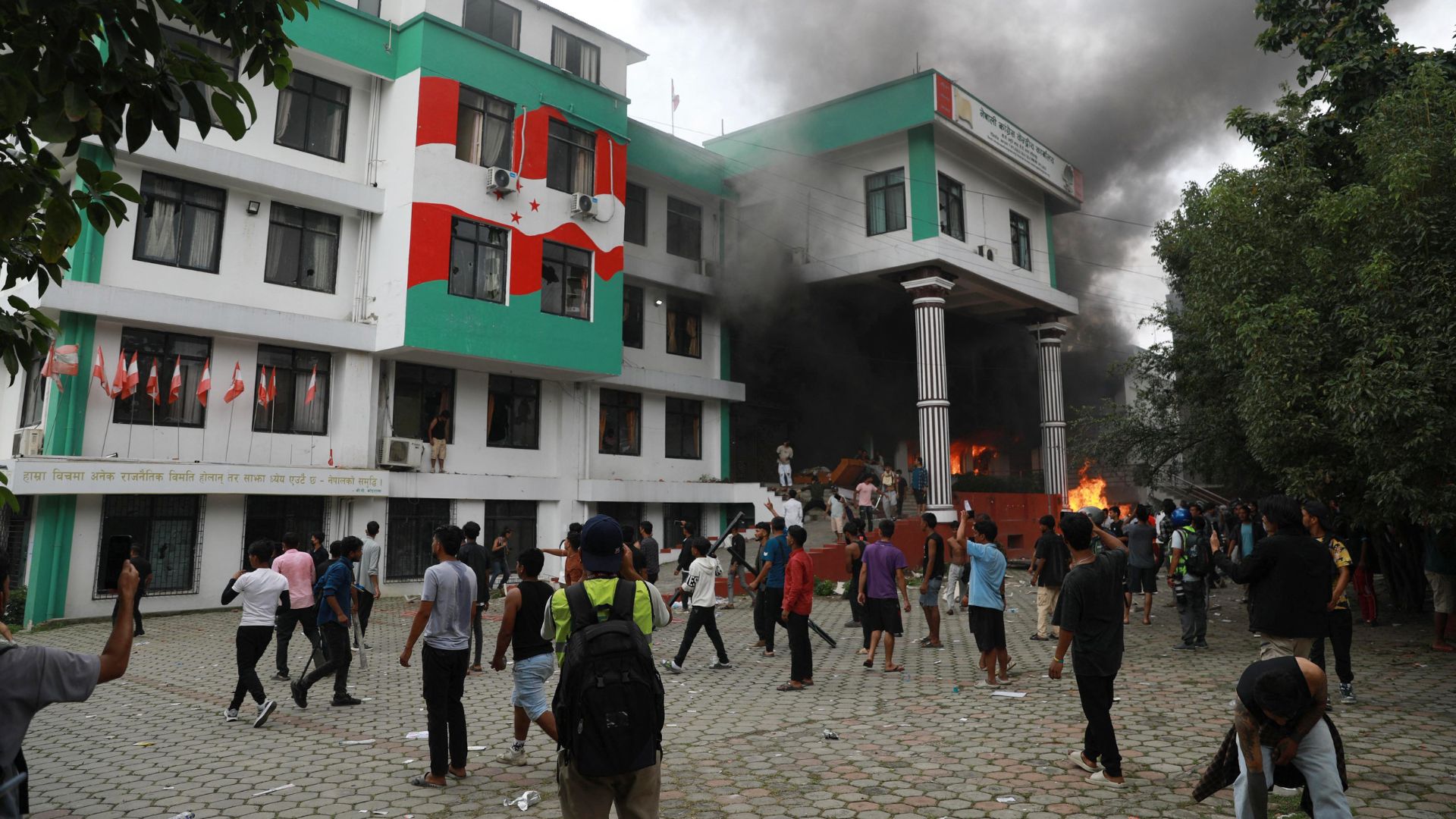 Videos difundidos en redes sociales mostraron una espesa columna de humo envolviendo el inmueble, ubicado en el corazón de la capital nepalí.