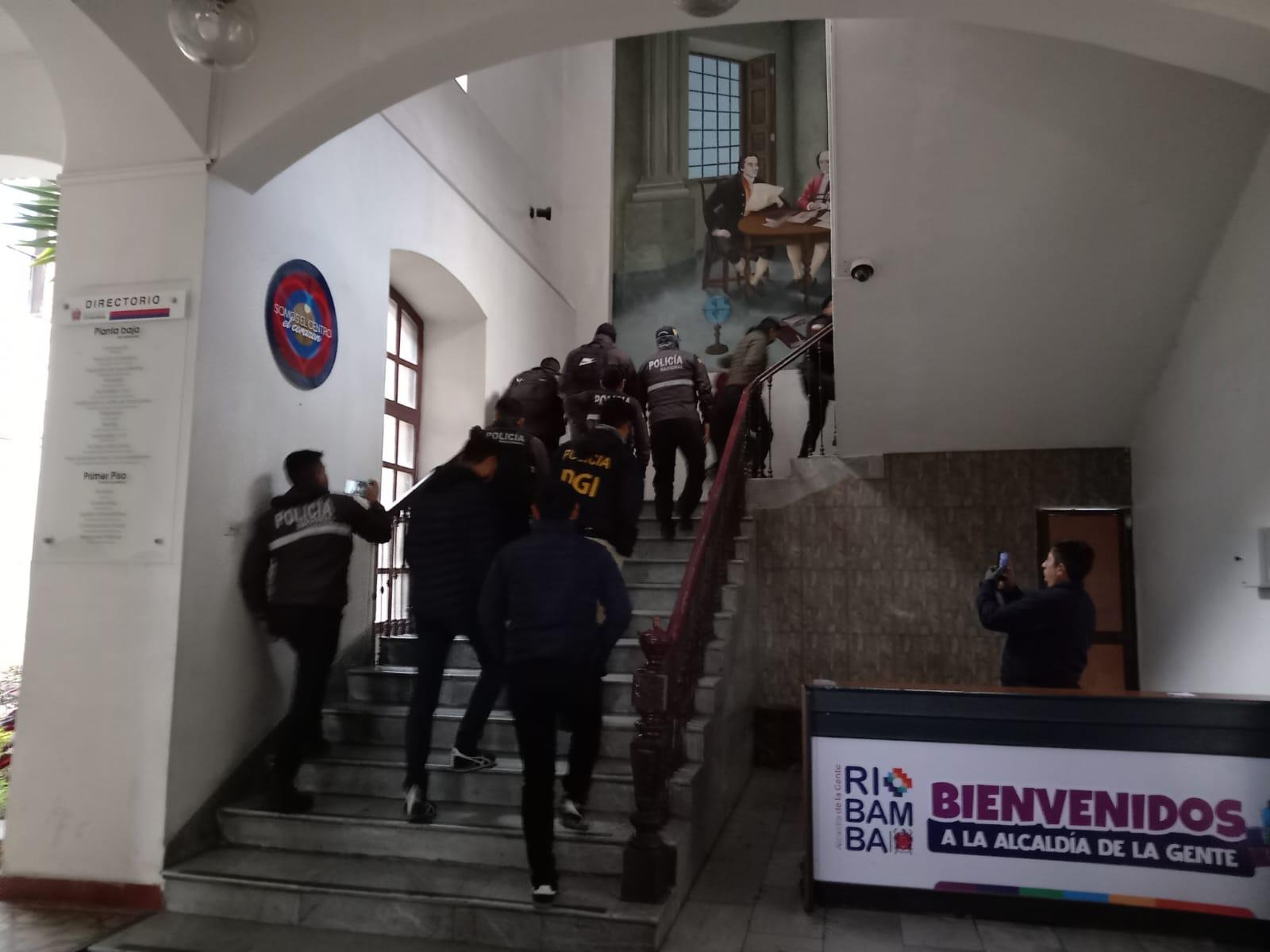 Durante el operativo, las autoridades allanaron el Municipio de Riobamba, la Dirección de Movilidad y los domicilios de cuatro concejales y siete personas más, entre funcionarios y abogados. Como resultado, 11 personas fueron detenidas con fines investigativos.
