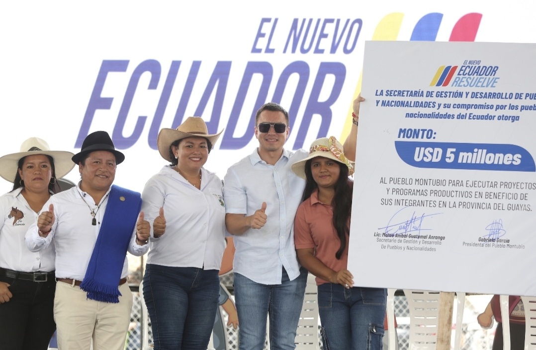 El presidente de la República, Daniel Noboa, anunció el financiamiento de USD 5 millones en fondos no reembolsables para fortalecer la productividad del Pueblo Montubio. La inversión, gestionada a través de la Secretaría de Gestión y Desarrollo de Pueblos y Nacionalidades, beneficiará a organizaciones del sector con proyectos agropecuarios, turísticos, artesanales y tecnológicos, con énfasis en jóvenes y mujeres.
