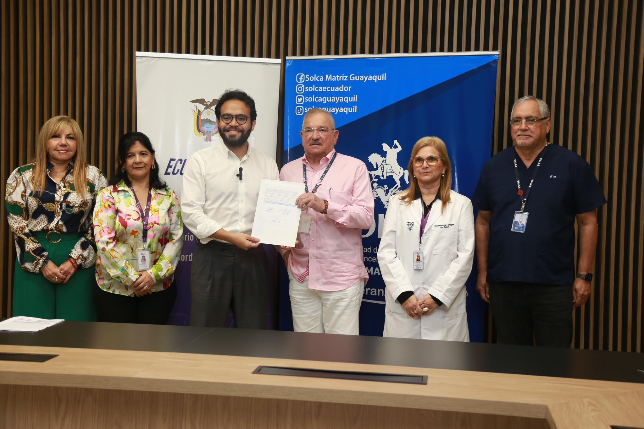 El Ministerio de Salud Pública (MSP) y la Sociedad de Lucha Contra el Cáncer (Solca) Matriz Guayaquil firmaron un convenio de pago para asegurar la continuidad de los tratamientos oncológicos y garantizar el derecho a la salud de los ecuatorianos. El acuerdo se oficializó esta mañana en el Hospital General de Solca Guayaquil, con la presencia de las principales autoridades de ambas instituciones.