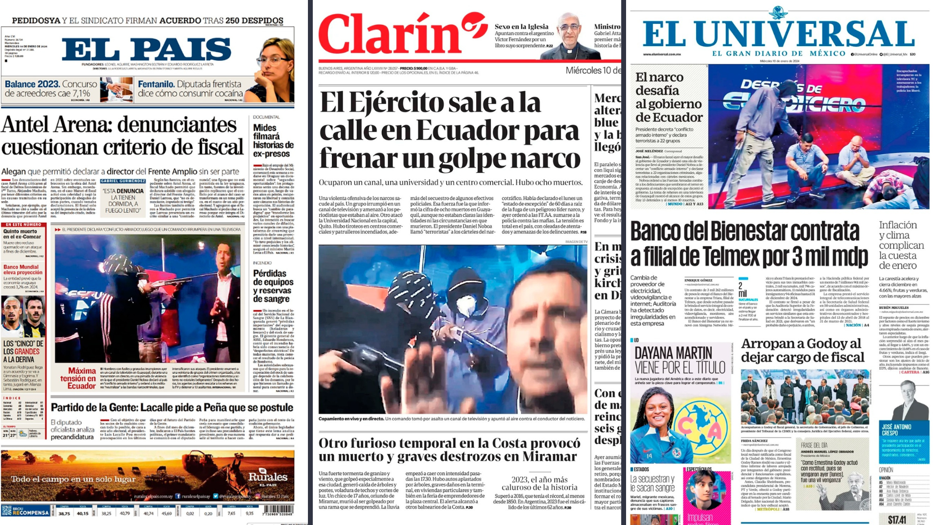 Medios de varios países del mundo pusieron a Ecuador de portada. Esto tras la ola de terror que ocurrió la tarde de martes, 9 de enero de 2024, cuando un grupo de sujetos armados ingresaron a la instalaciones de TC Televisión para tomar de rehén a sus trabajadores y aparecer en vivo emitiendo amenazas y señales. La policía intervino en las instalaciones poniendo a buen recaudo a los empleados y aprehendiendo a los captores.