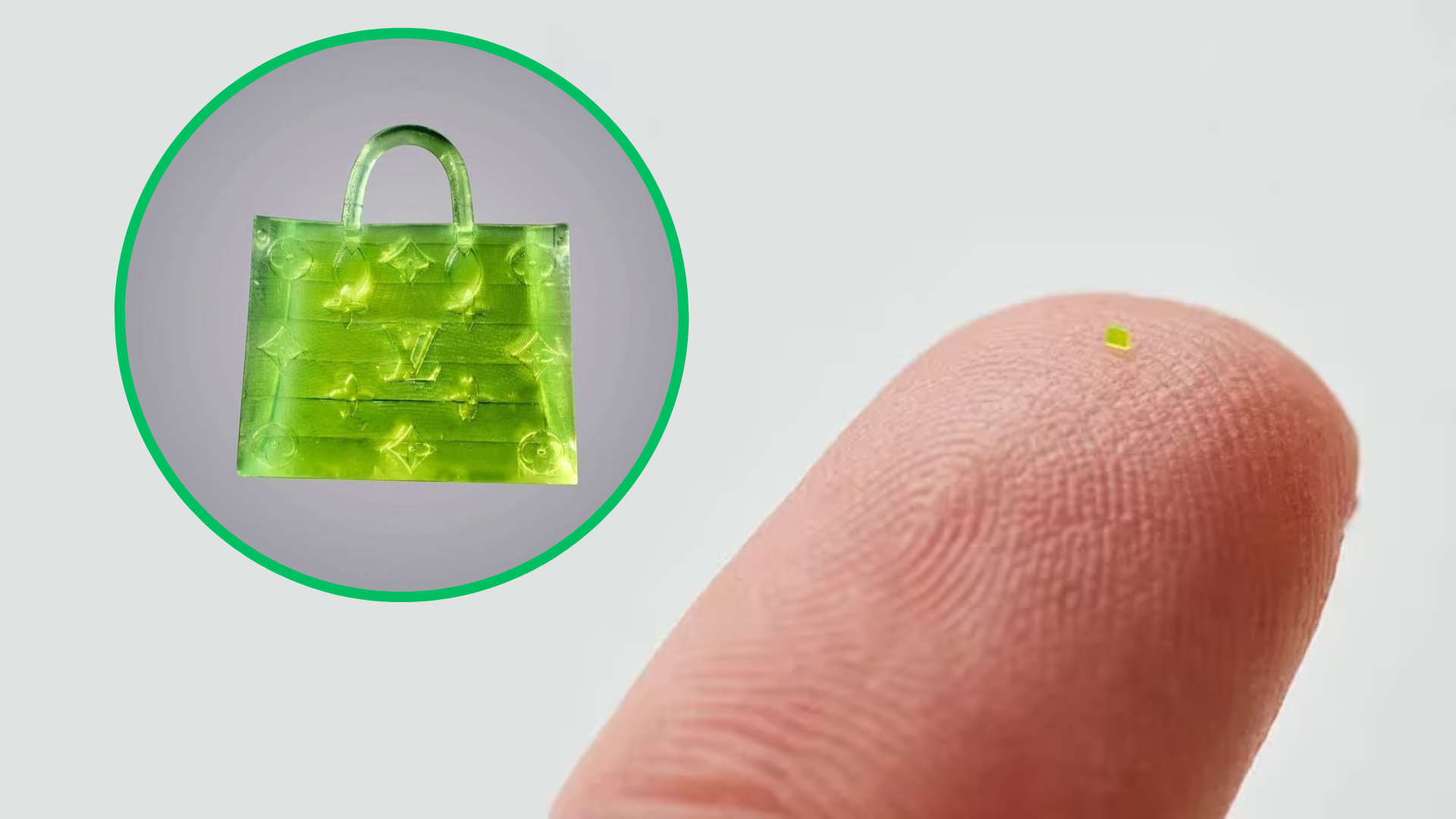 Inspirada en el famoso bolso Onthego GM de Louis Vuitton, MSCHF ha creado esta curiosa pieza desafiando una vez más las reglas de la moda, siendo este el bolso o cartera más pequeño del mundo. Ya que es más pequeño que un grano de sal y se necesita un microscopio para poder ver todos sus detalles.