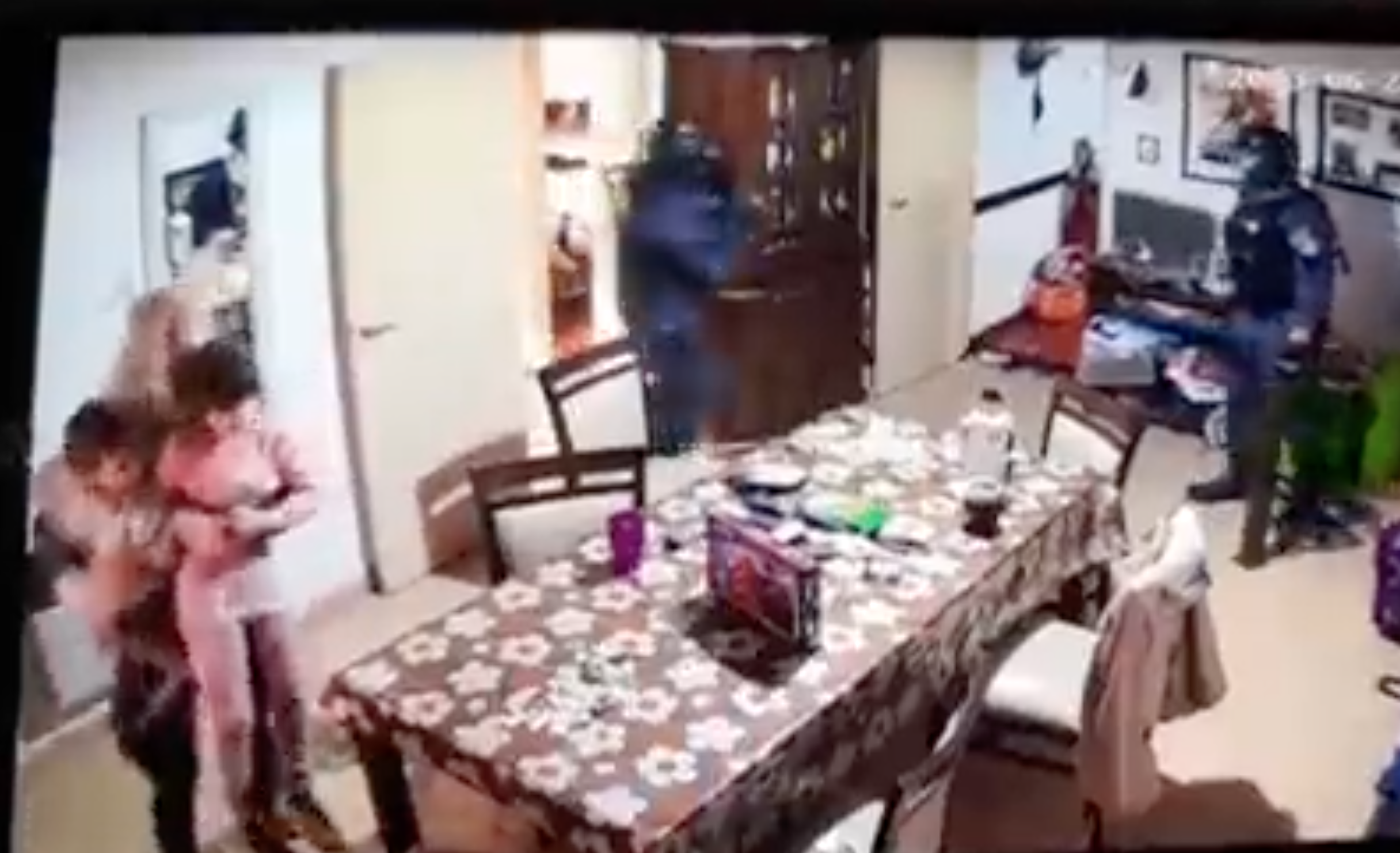 Se trataba de un allanamiento legar, sin embargo, todo fue un error: según denunció la familia, los agentes se equivocaron de dirección y entraron a la casa que no correspondía. La secuencia quedó grabada por las cámaras de seguridad ubicadas en el comedor de la propiedad.