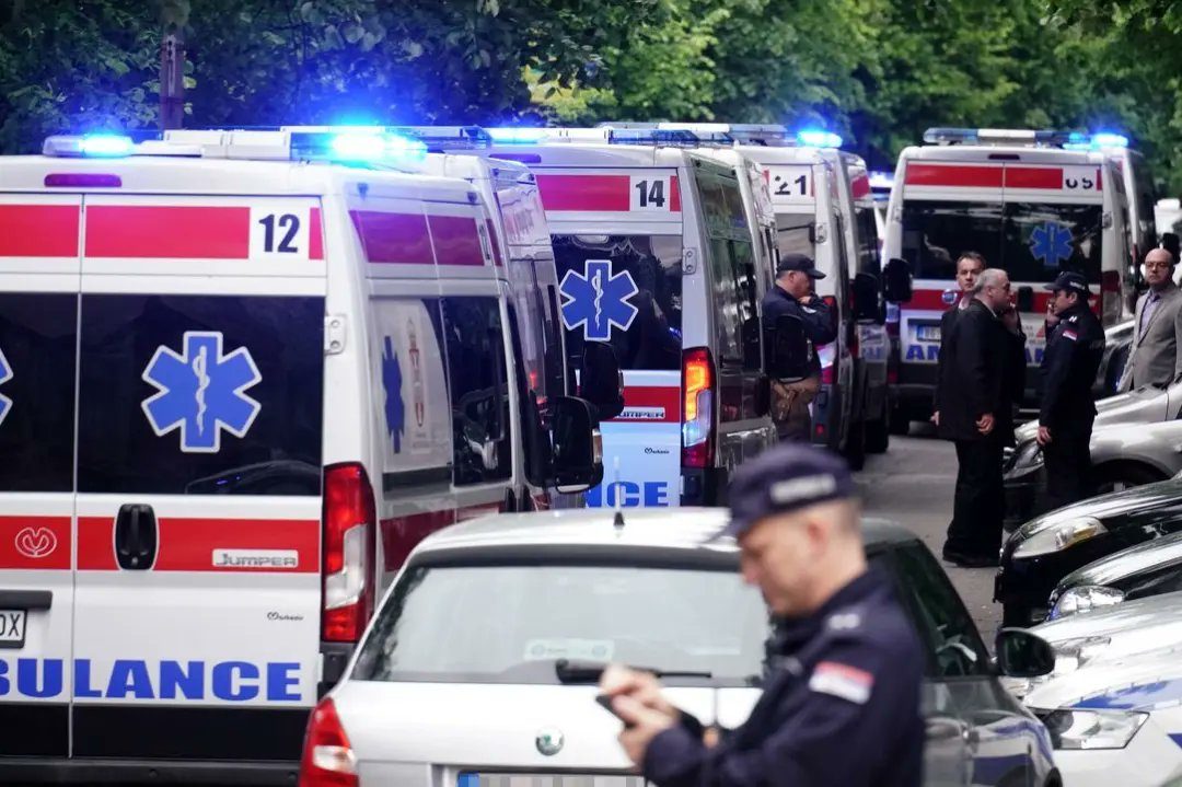 Seis niños y un profesor fueron hospitalizados, dijo el Ministerio del Interior de Serbia. El menor fue detenido en el patio del edificio, según el Ministerio.