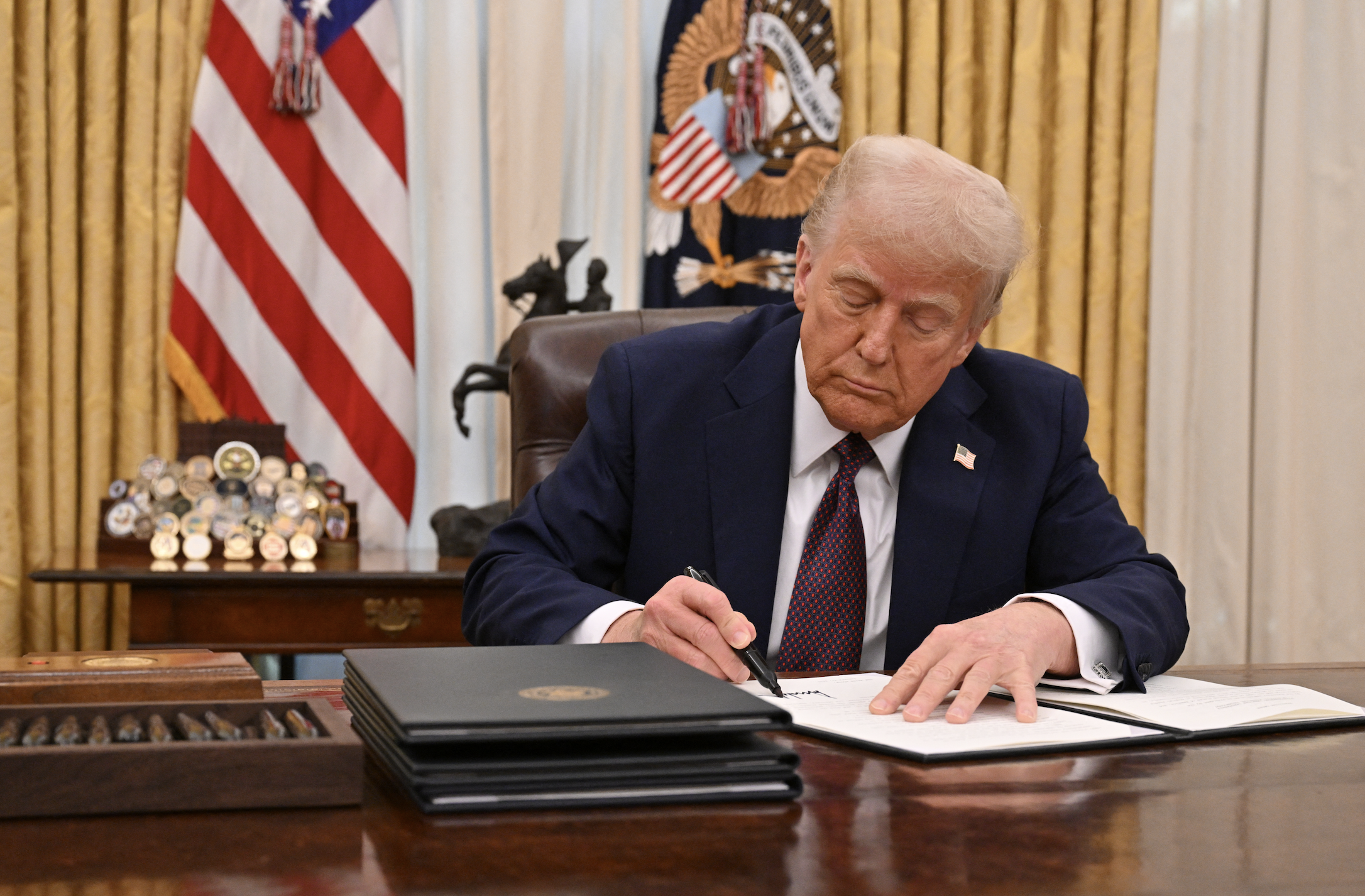 Después de la firma, Trump entregó el bolígrafo que usó a un asistente y comentó: «Dáselo a RFK Jr.», refiriéndose a Robert F. Kennedy Jr., su candidato a secretario del Departamento de Salud y Servicios Humanos.