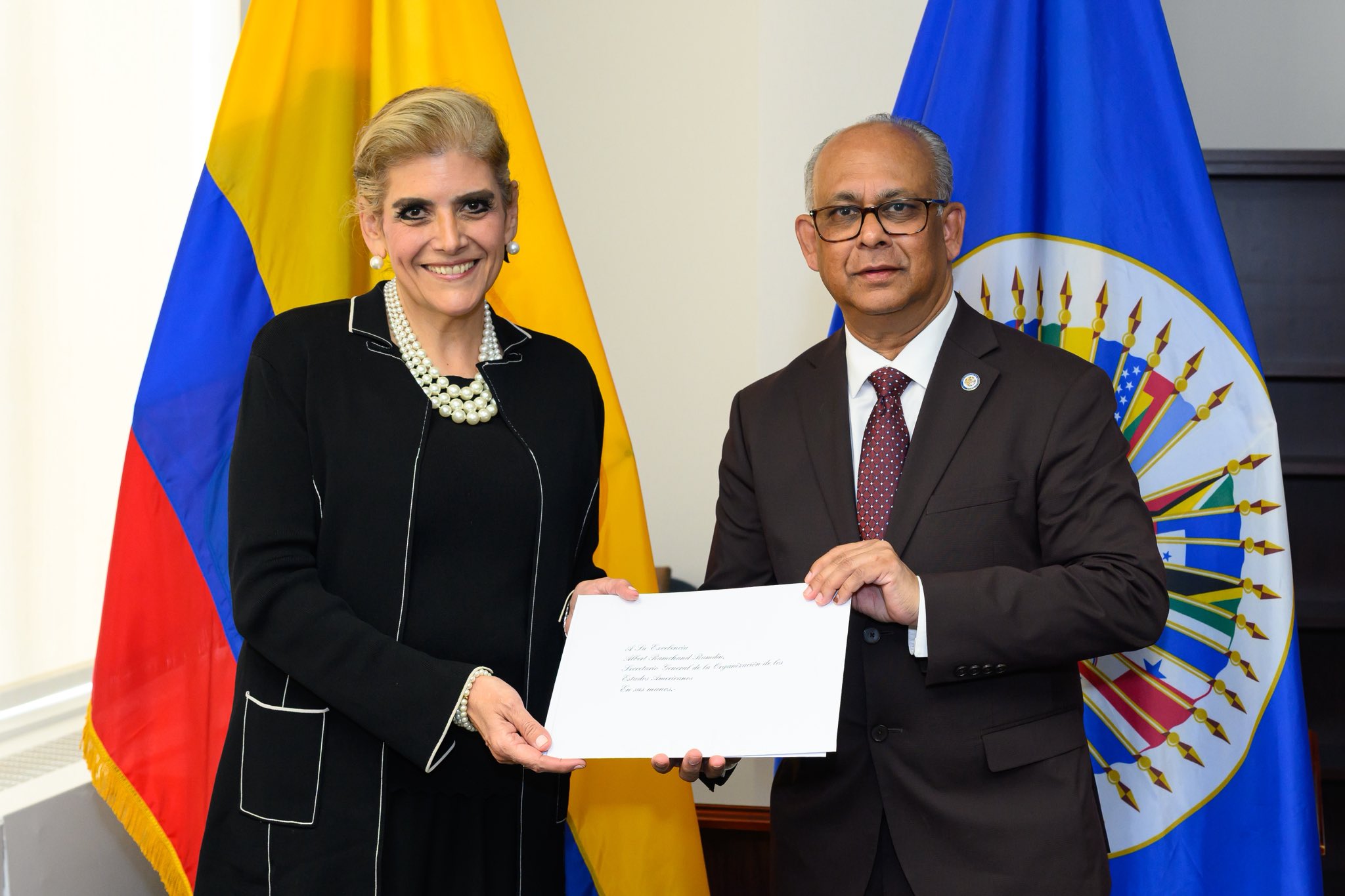 La doctora Mónica Palencia presentó este jueves sus cartas credenciales como Embajadora Extraordinaria y Plenipotenciaria, en calidad de Representante Permanente del Ecuador ante la Organización de Estados Americanos (OEA). El acto protocolario se realizó en Washington D. C., ante el Secretario General de la OEA, Albert Ramdin.