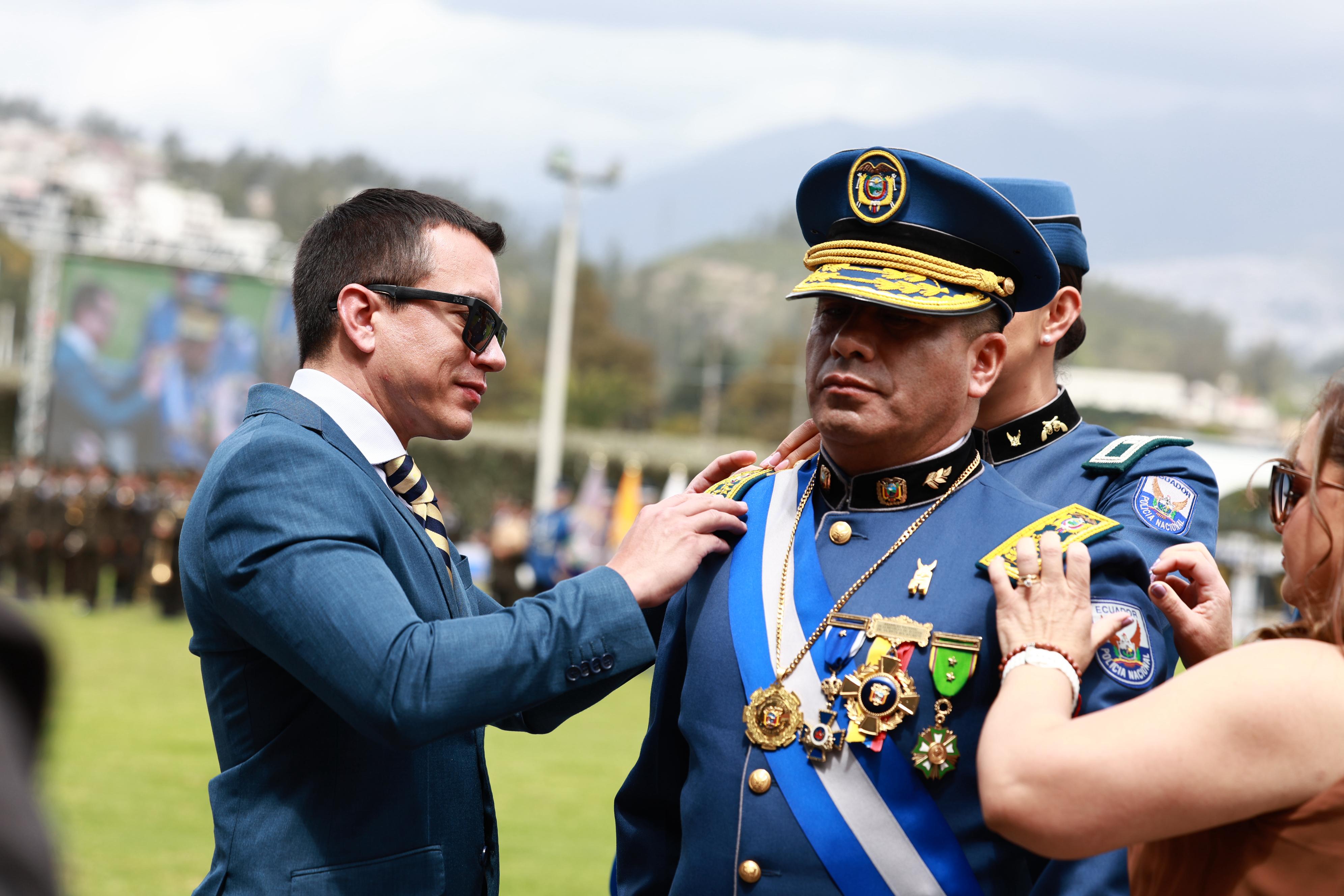 «No nos vamos a detener hasta derrotar a quienes amenazan nuestra democracia y nuestro futuro», afirmó el presidente Noboa, reiterando el compromiso del Gobierno de robustecer las capacidades de los uniformados.