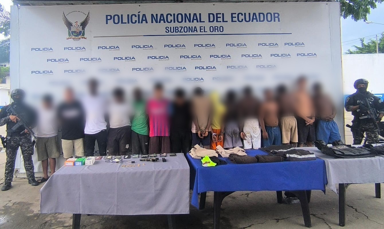 La Policía Nacional ejecutó el operativo ‘Libertad 187’ en el cantón Machala, provincia de El Oro, logrando la aprehensión de 10 adultos y 5 adolescentes presuntamente involucrados en delitos de extorsión y ataques con artefactos explosivos a locales comerciales y vehículos.
