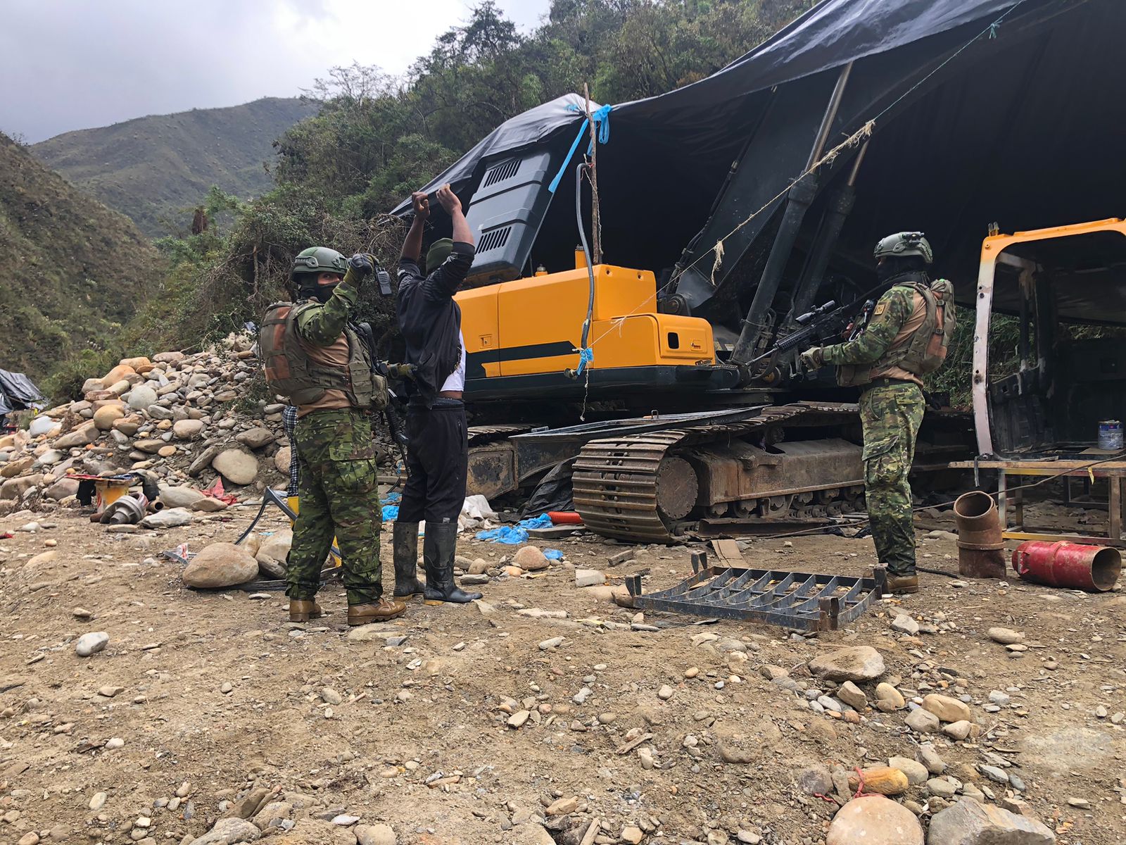 En el operativo, se destruyeron 13 dragas, 45 campamentos mineros, excavadoras, zarandas tipo Z, generadores eléctricos y un motor de agua.