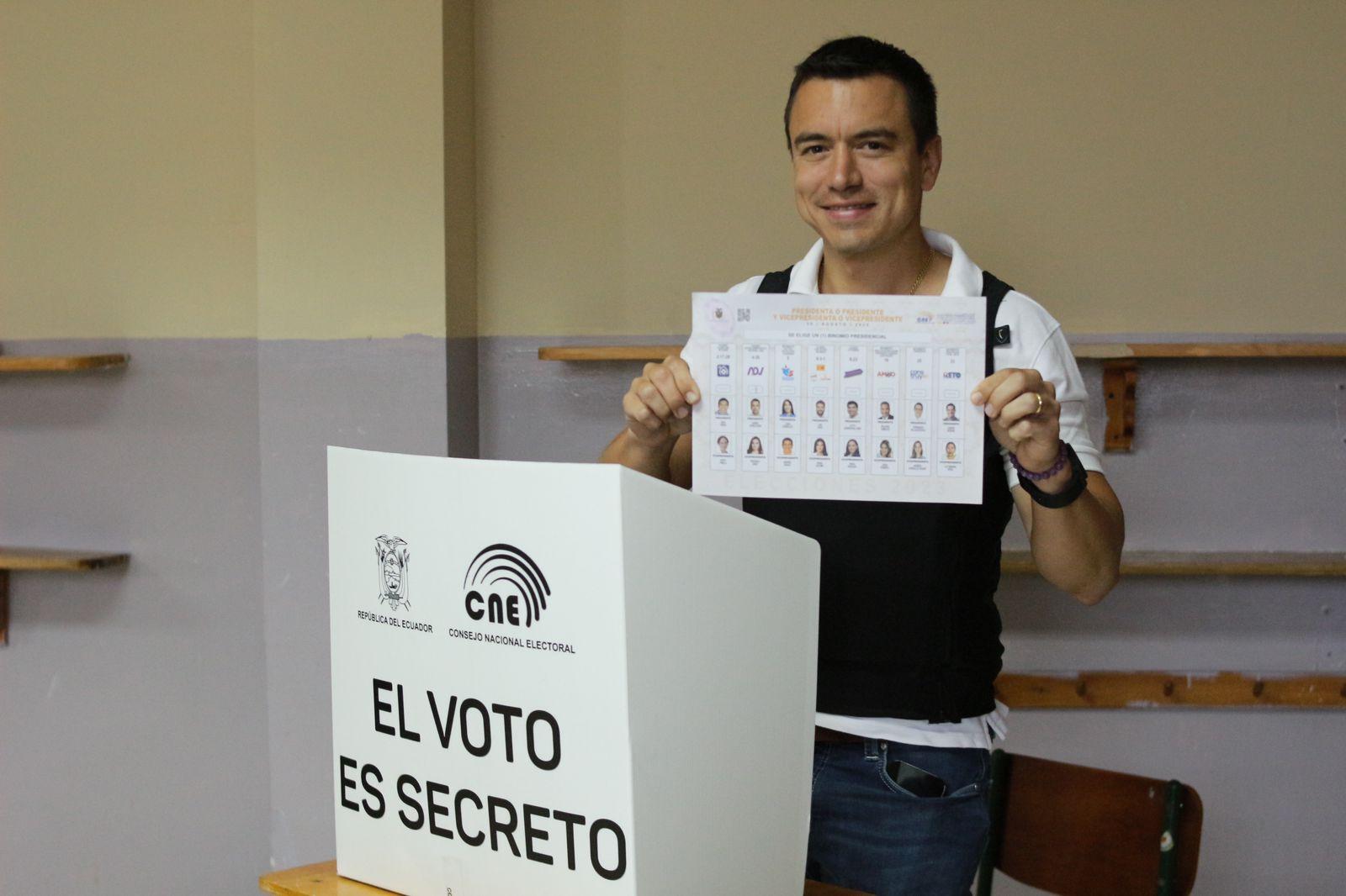 Enseguida, Noboa ejerció su derecho al voto y les mostró a un grupo de simpatizantes que lo aplaudían. El candidato mencionó que espera que todo se mantenga en orden y con seguridad para que el proceso electoral sea normal.