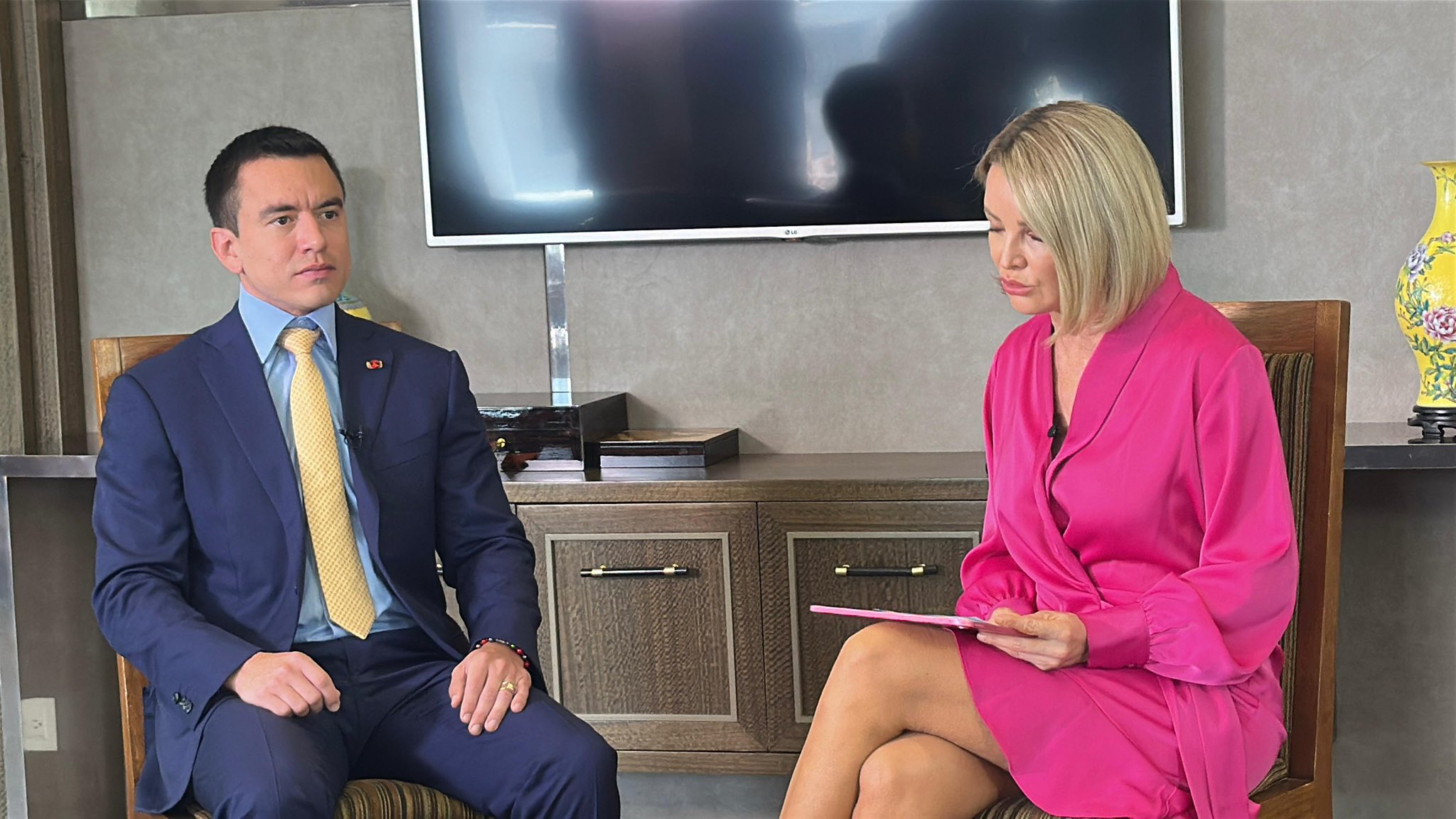 El presidente Daniel Noboa Azín concedió una entrevista a Janeth Hinostroza desde el Palacio de Carondelet, la que se abordaron temas energéticos y de seguridad.