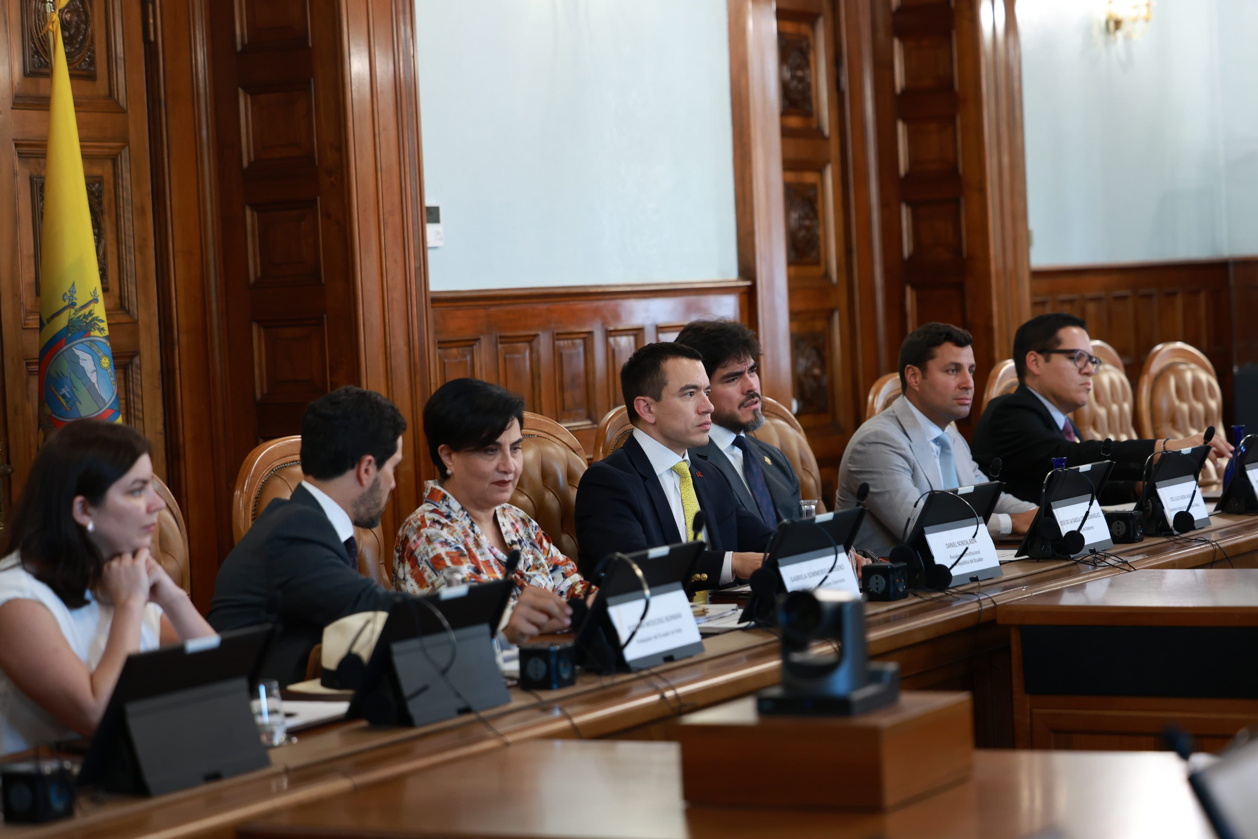 Acompañaron al presidente Noboa en esta visita oficial una delegación integrada por la canciller Gabriela Sommerfeld; el ministro de Gobierno, José de la Gasca; el secretario de Integridad Pública, José Julio Neira; y el director del Centro de Inteligencia Estratégica (CIES), Michele Sensi-Contugi.