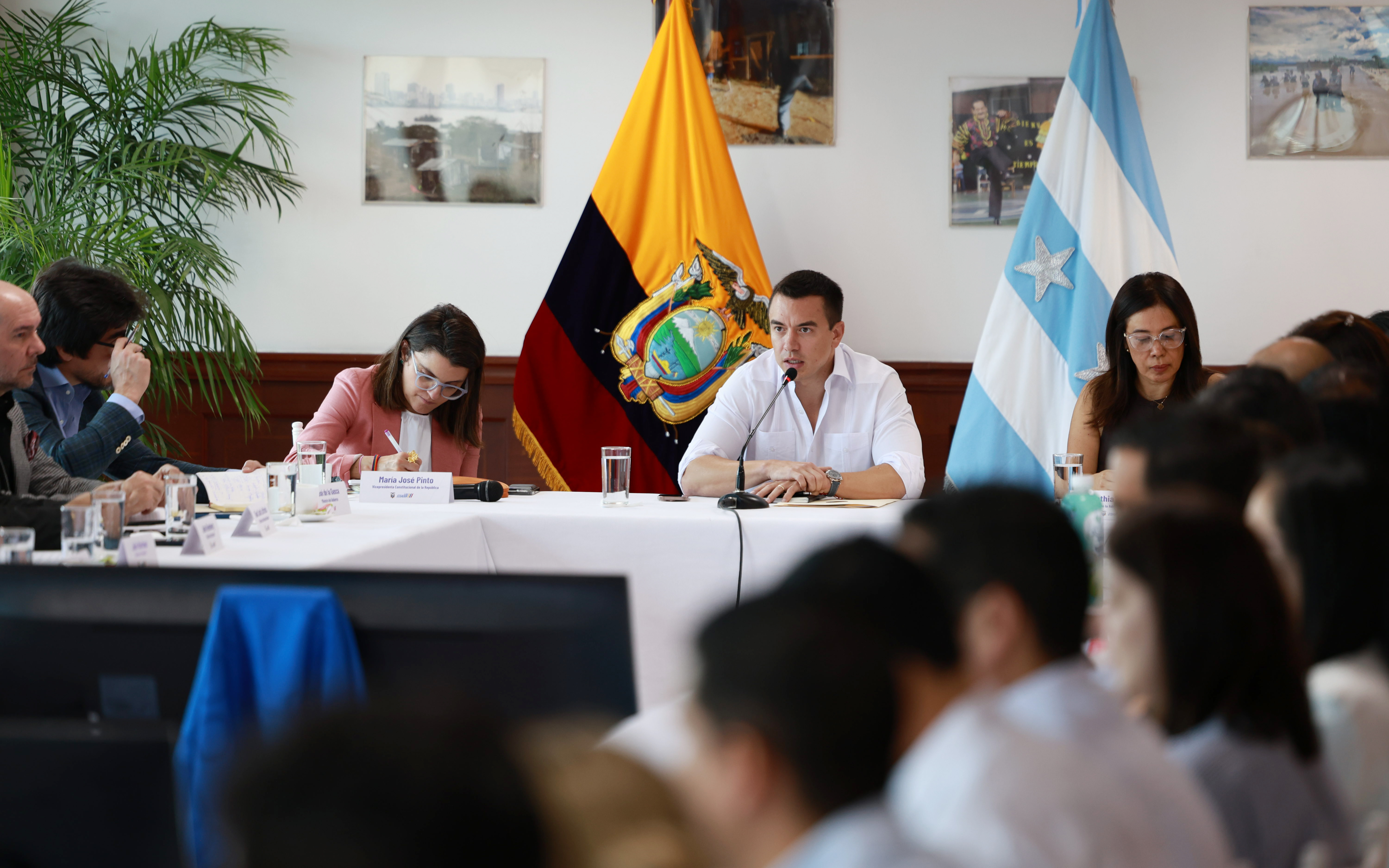 “Los ministerios deben dar soporte unos a otros con data, información, comunicación (…). Debemos actuar como unidad y apoyar entre instituciones”, subrayó Noboa al abrir la jornada.