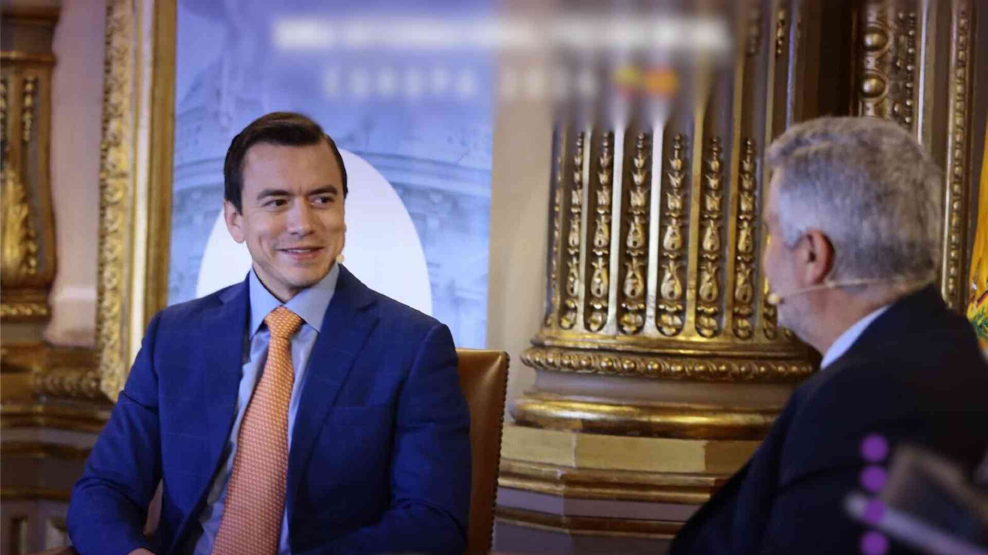 El evento estuvo conducido por el periodista Miguel Ángel Oliver de la Agencia EFE, quien pudo conversar con el Mandatario sobre los progresos del Ecuador en diversas áreas clave durante sus primeros seis meses de Gobierno.