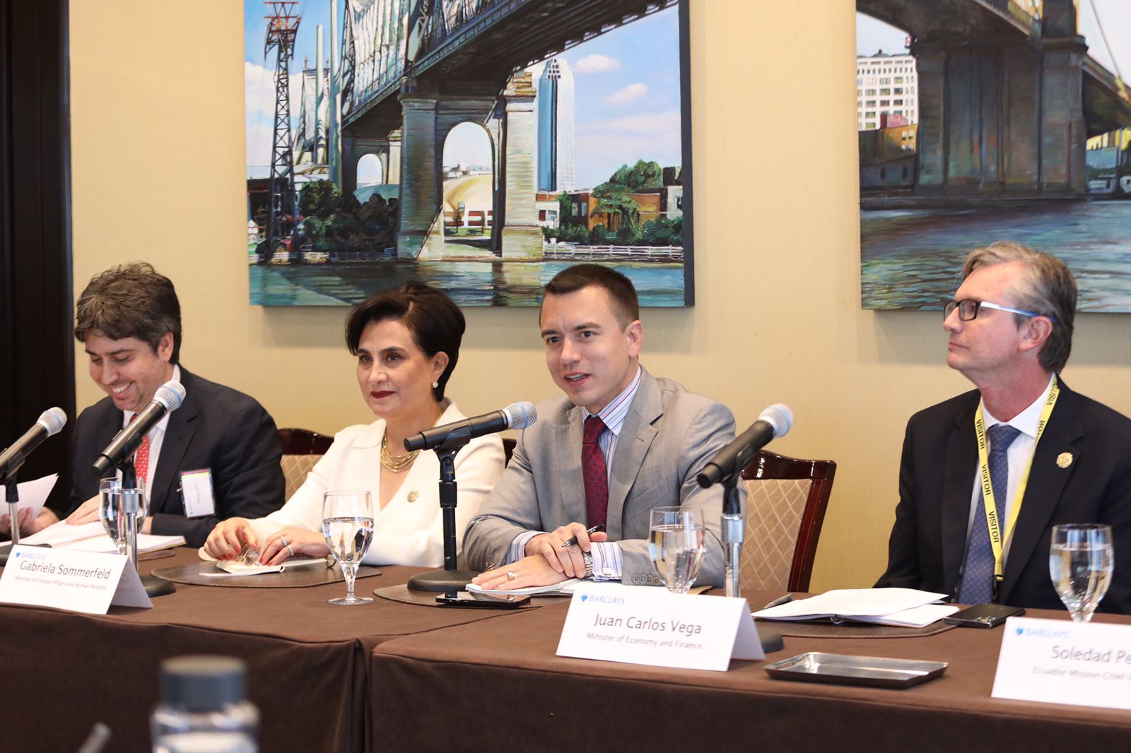 Durante la reunión, el presidente Noboa fue acompañado por la canciller Gabriela Sommerfeld y el ministro de Economía y Finanzas, Juan Carlos Vega.