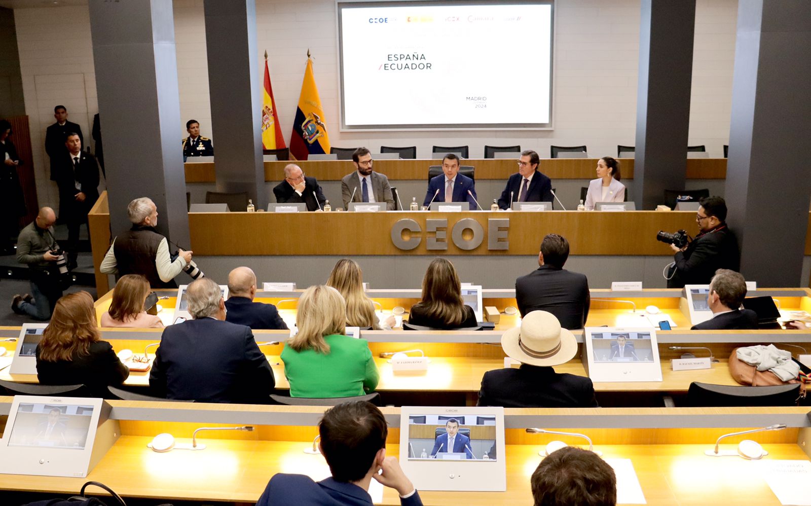 El presidente Daniel Noboa se reunió con empresarios europeos en la sede de la patronal española (CEOE), este jueves 25 de enero de 2024, a quienes les habló los planes de su gobierno en seguridad y generación de empleo.