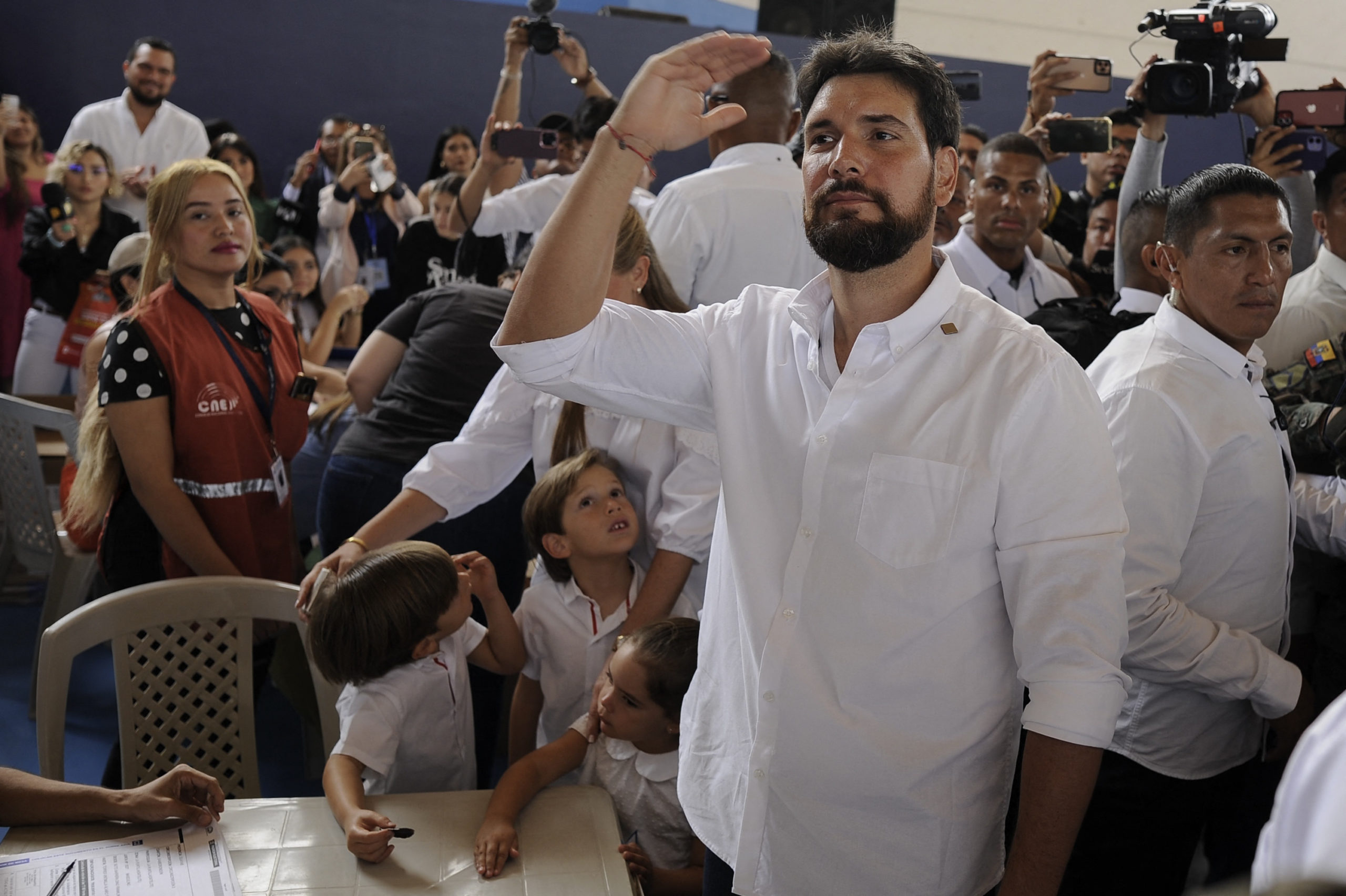 Topic hizó un llamado a la ciudadanía para que voten a conciencia en estas elecciones. Llegó a las 09:00 acompañado de su esposa Pity Guzmán, sus tres hijos y sus guardias privados.