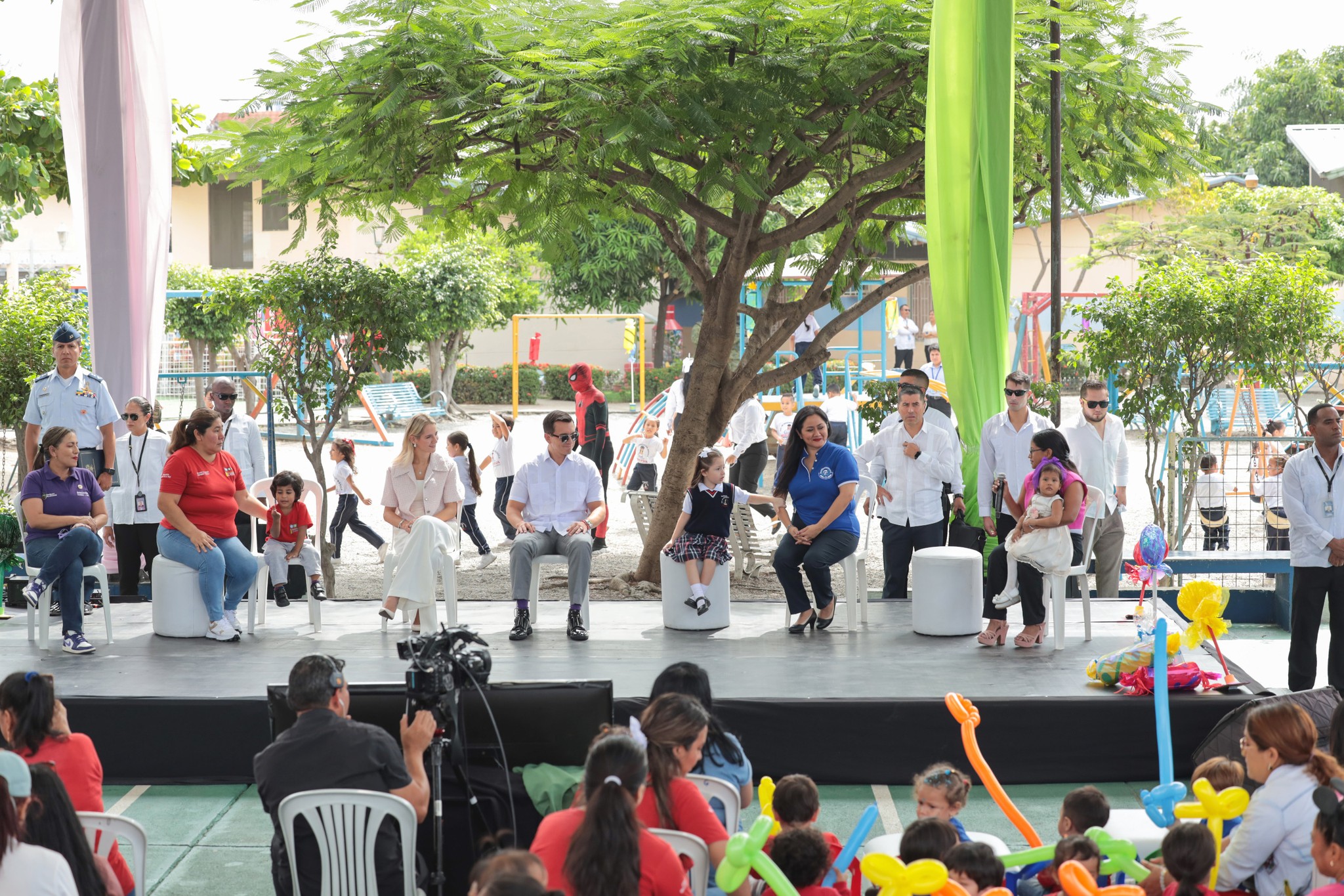 El Primer Mandatario visitó una institución educativa en el norte de Guayaquil por el Día del Niño, en el evento, subrayó la necesidad de trabajar en conjunto para garantizar un futuro prometedor para la infancia del país.