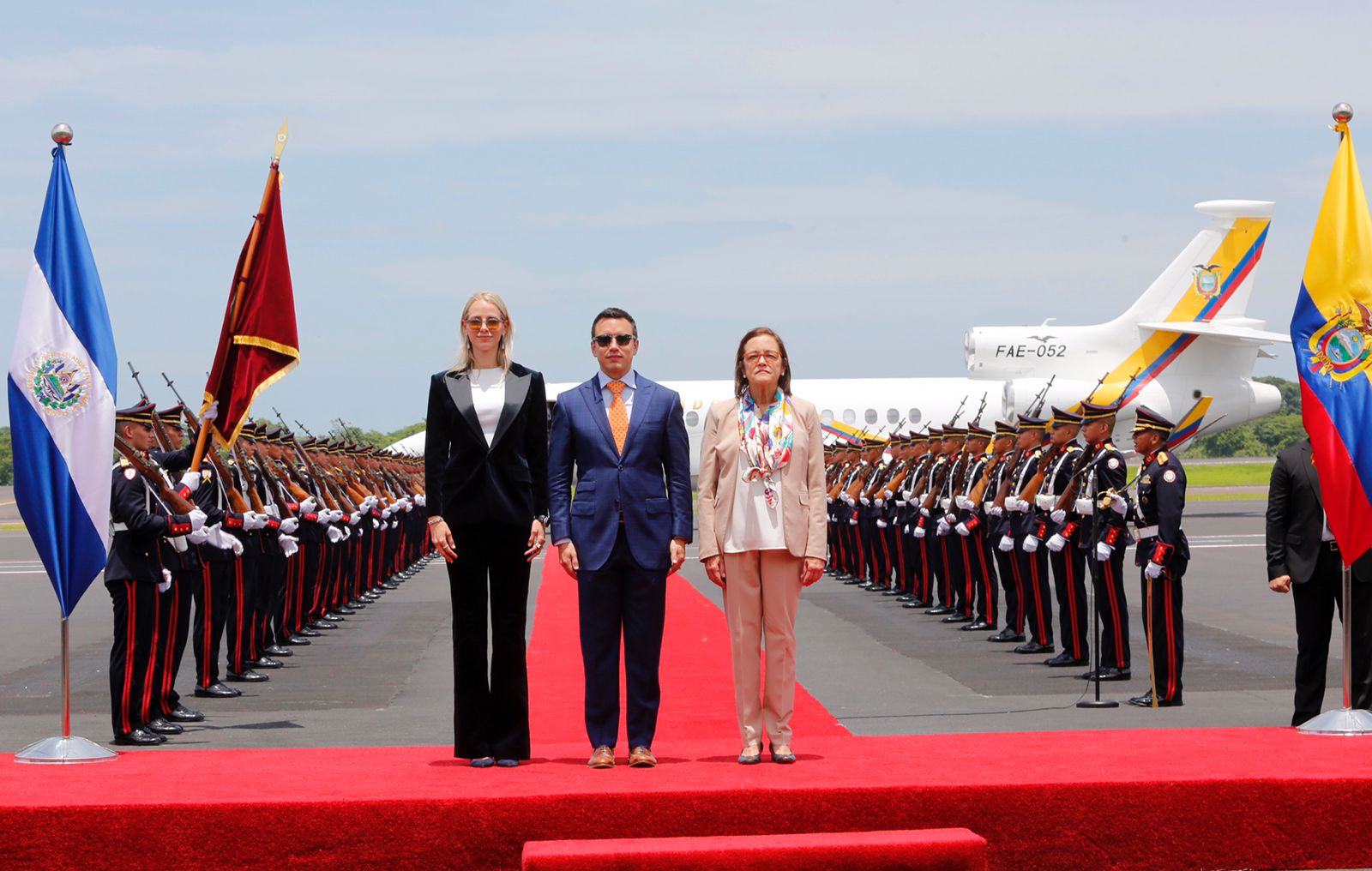 El Presidente Daniel Noboa llegó a El Salvador para participar de la investidura presidencial de Nayib Bukele. El Primer Mandatario fue recibido la tarde de este 31 de mayo por la Canciller salvadoreña, Alexandra Hill.