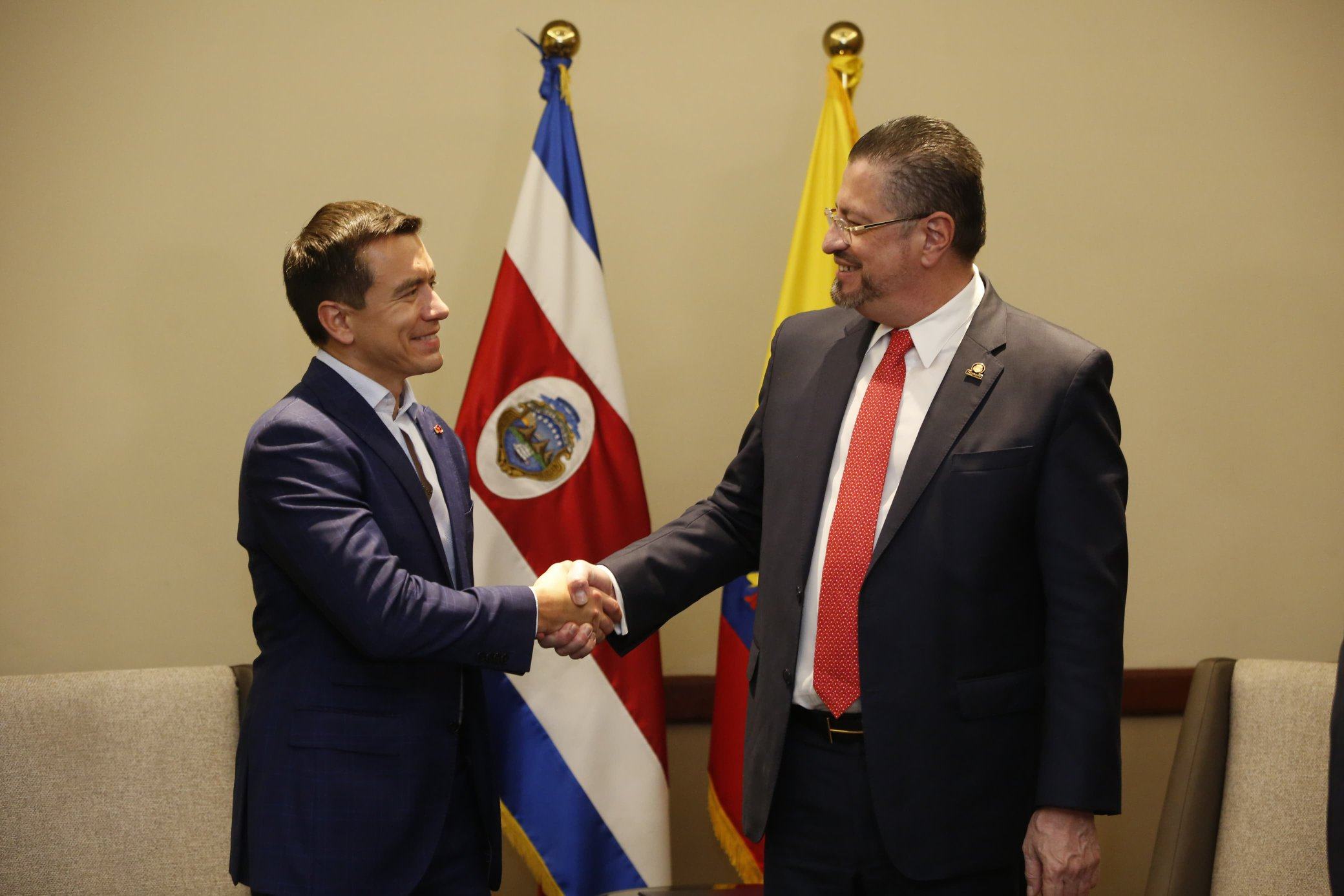 El Presidente del Ecuador Daniel Noboa, se reunió con su homólogo costarricense, Rodrigo Chaves, en San Salvador la noche del viernes, 31 de mayo de 2024, para platicar sobre el tratado comercial entre ambos países.