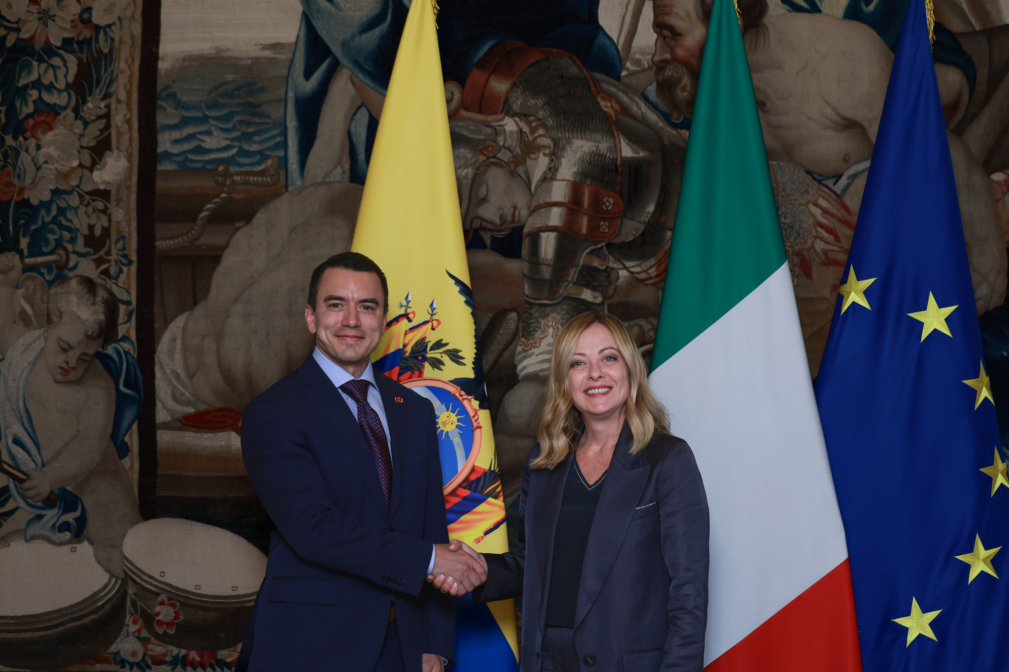 Durante las reuniones, el presidente Noboa destacó la importancia de sumar a la comunidad internacional en la lucha contra el crimen organizado, promover la inversión extranjera en sectores clave como energía, infraestructura, petróleo y minería, y generar nuevas oportunidades laborales para los ecuatorianos. En este contexto, el presidente Noboa agradeció el acuerdo bilateral que facilitará el acceso de ciudadanos ecuatorianos a empleos en Italia y fortalecerá el combate a la migración irregular.