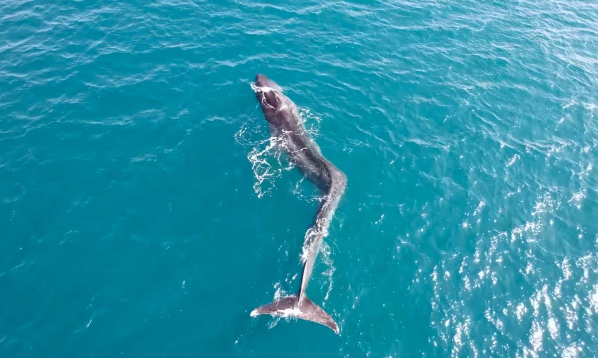 Imágenes tomadas con ayuda de un dron que fueron compartidas por la Guardia Civil española dejaron ver que el pasado 6 de marzo un espécimen de 17 metros de largo estaba nadando cerca de Cullera, en el mar Mediterráneo, sin embargo, la parte de la cola la tenía visiblemente desviada.