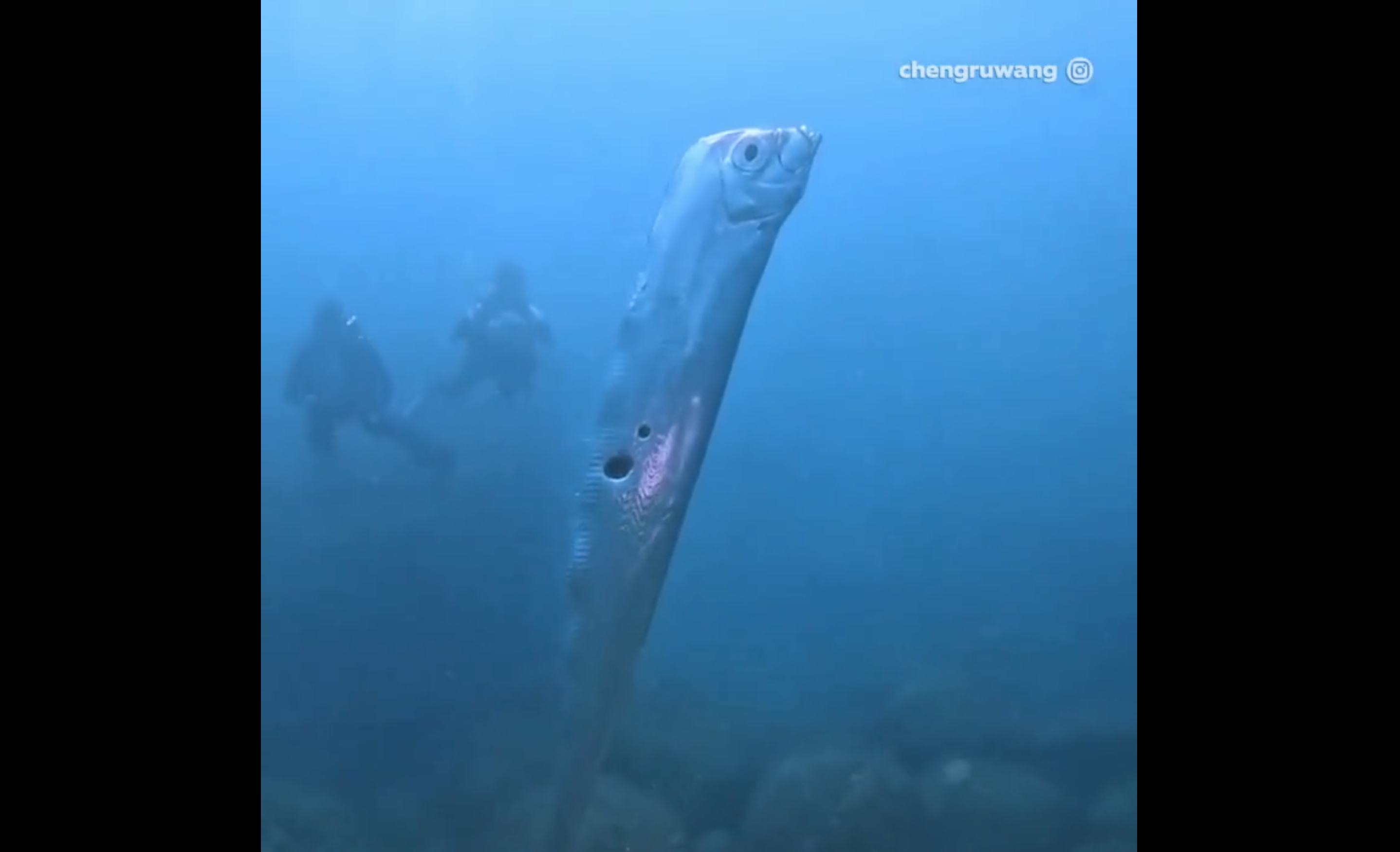 Un instructor de buceo, Wang Chengru. captó imágenes poco comunes de un pez remo (‘Regalecus russelii’), también conocido como pez terremoto, nadando en aguas superficiales de la costa noreste de Taiwán, dice RT.