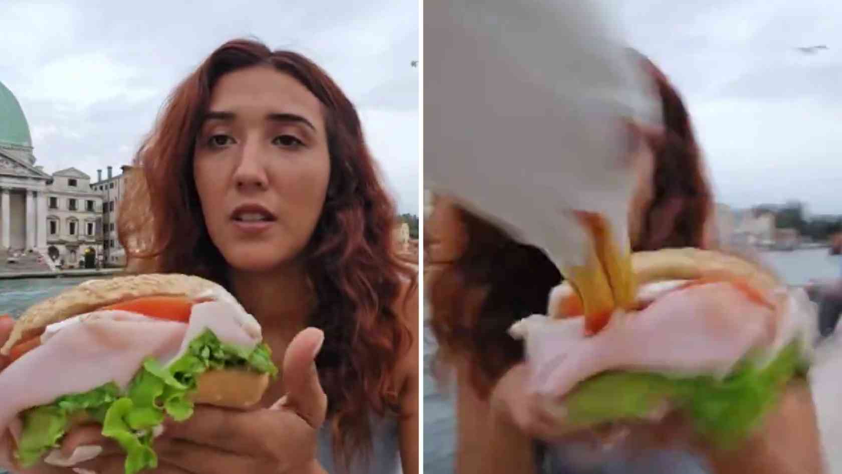 Un grupo de gaviotas atacó a una joven mientras transmitía en vivo, arrebatándole su sánduche en plena transmisión. El incidente se volvió viral rápidamente en redes sociales, este lunes 8 de julio de 2024.