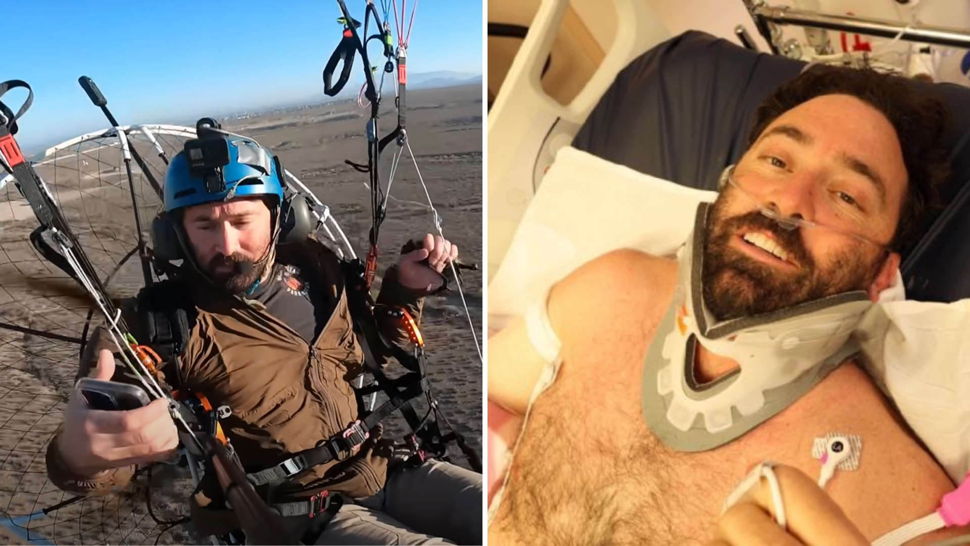 Anthony Vella, el youtuber experto en vuelo propulsado, sobrevivió a una caída de 25 metros mientras manejaba su paramotor, un momento que quedó capturado en video.