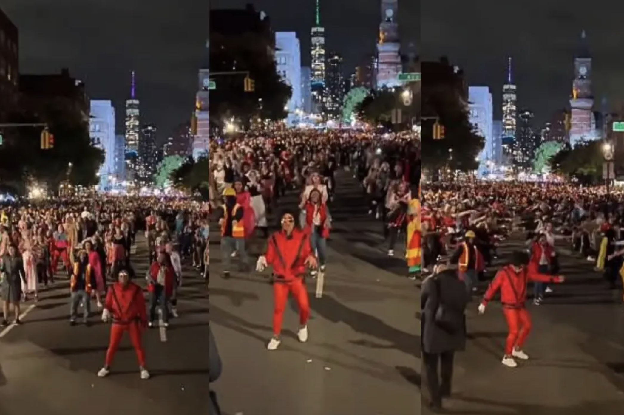 En el desfile de Halloween en Nueva York, los participantes iniciaron su actuación caminando como si fueran zombis y luego llevaron a cabo una coreografía al ritmo de la famosa canción del ‘Rey del Pop.’ Esta es una costumbre arraigada en la ciudad en la que numerosas personas se unen para llevar a cabo este baile.