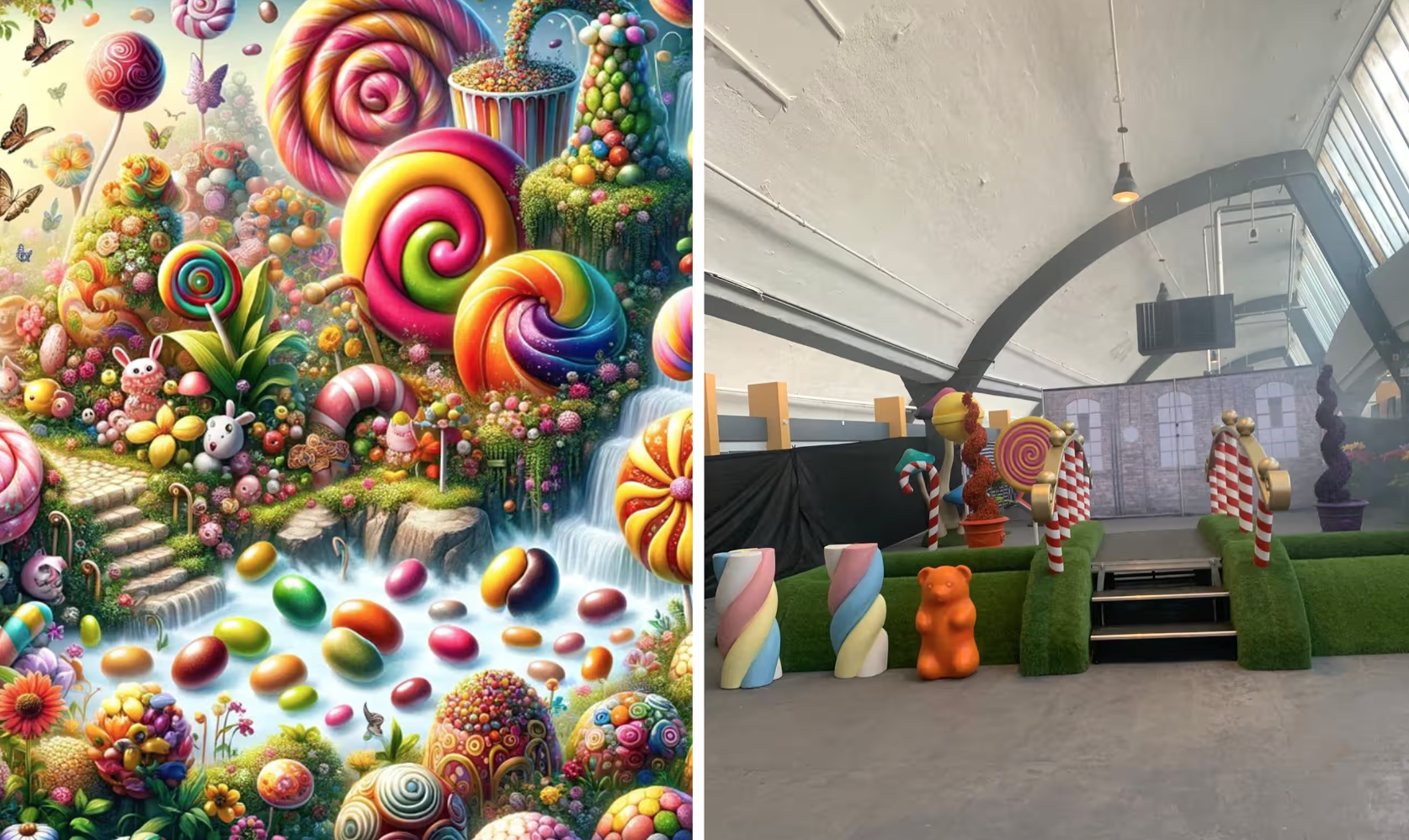Se ofrecía una experiencia inmersiva donde los dulces y el chocolate eran los protagonistas que fueron promocionados con imágenes hechas en IA. Según informaba la página del evento, la idea de esta experiencia consistía en mostrar diferentes espacios que estuvieran ambientados en el universo de Willy Wonka, algo que no han sido capaces de transmitir.