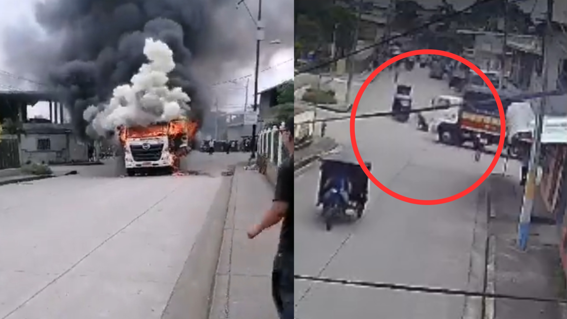 Un camión fue retenido e incendiado por la ciudadanía tras verse involucrado en un siniestro de tránsito con una motocicleta.