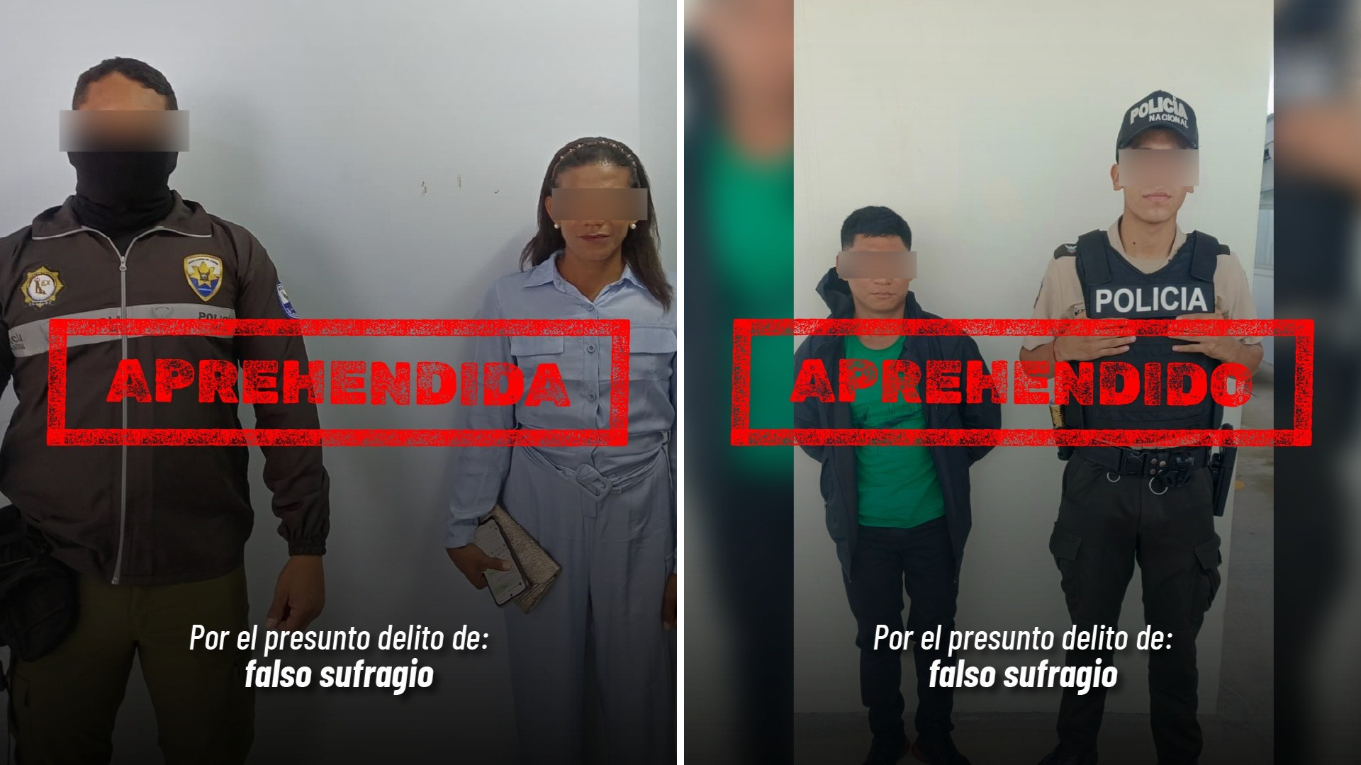 Durante el desarrollo de la segunda vuelta electoral en Ecuador, el Ministerio del Interior y la Policía Nacional informaron la aprehensión de dos ciudadanos por presunto delito de falso sufragio en las provincias de Sucumbíos y Esmeraldas.