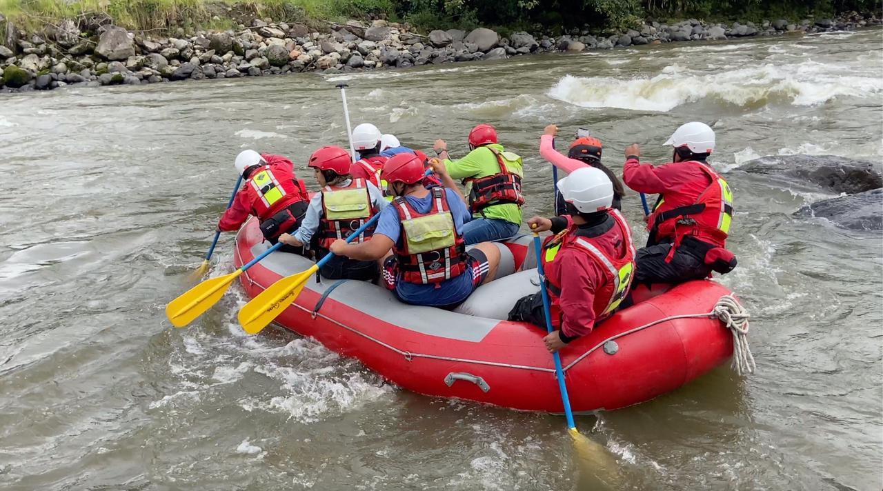 El objetivo es remar de manera intensa para no dejarse doblegar por la corriente del río Quijos, que produce diversas emociones en el descenso.