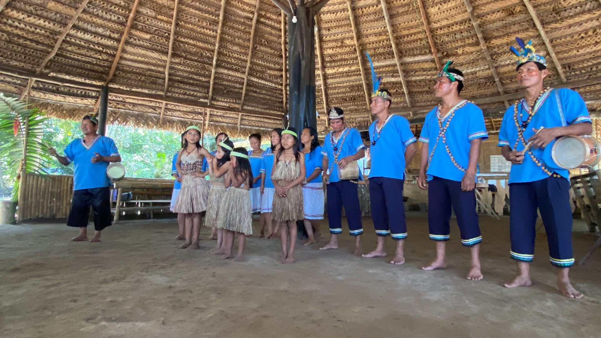 Al son de una danza kichwa de bienvenida nos recibe la comuna de San Carlos, en la Amazonía ecuatoriana.