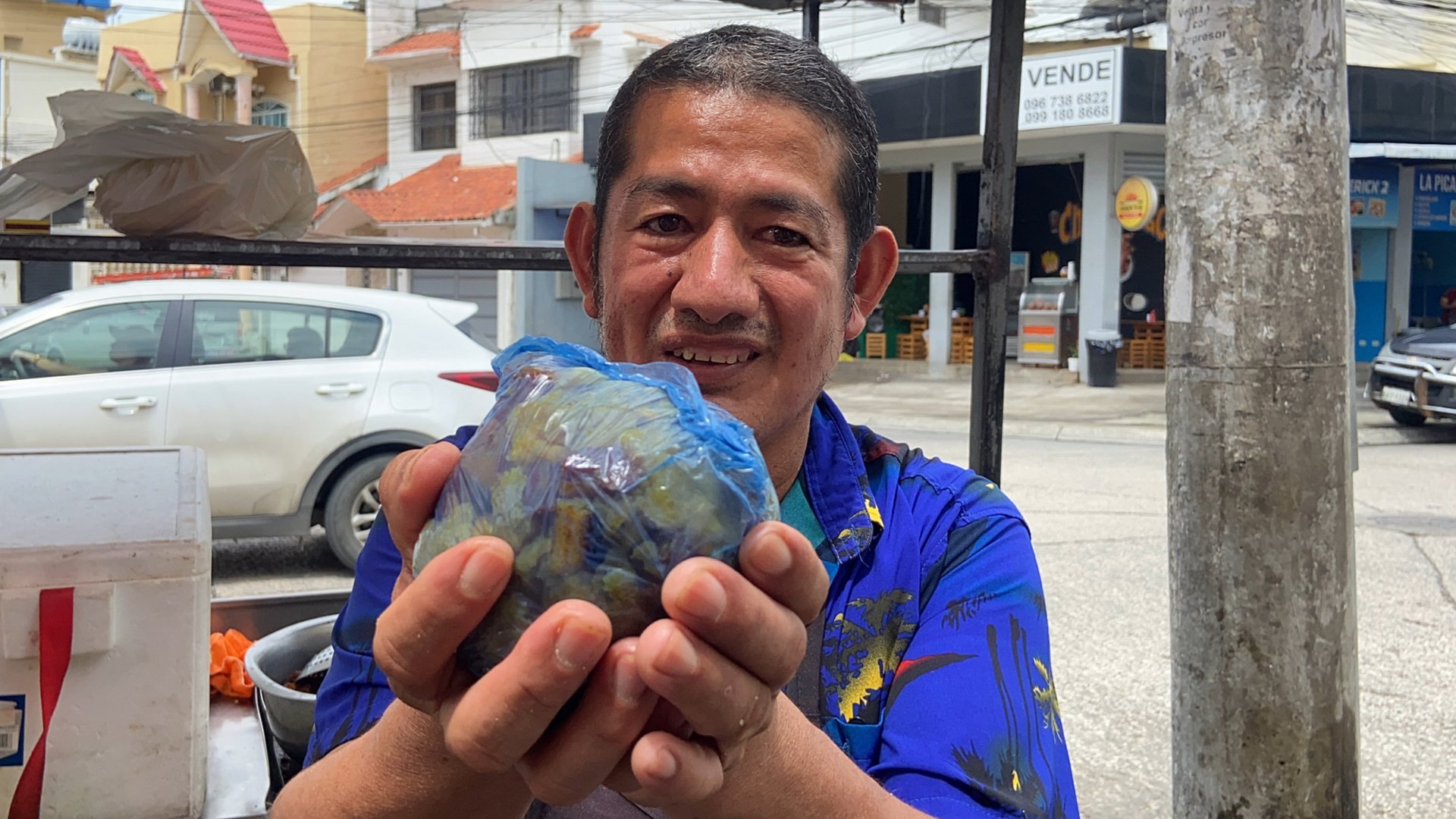 Daniel Bajaña es el creador del conocido ‘bolón cabeza de niño’ y lo lleva vendiendo en una esquina desde hace 21 años en Urdenor 2, en el norte de Guayaquil.