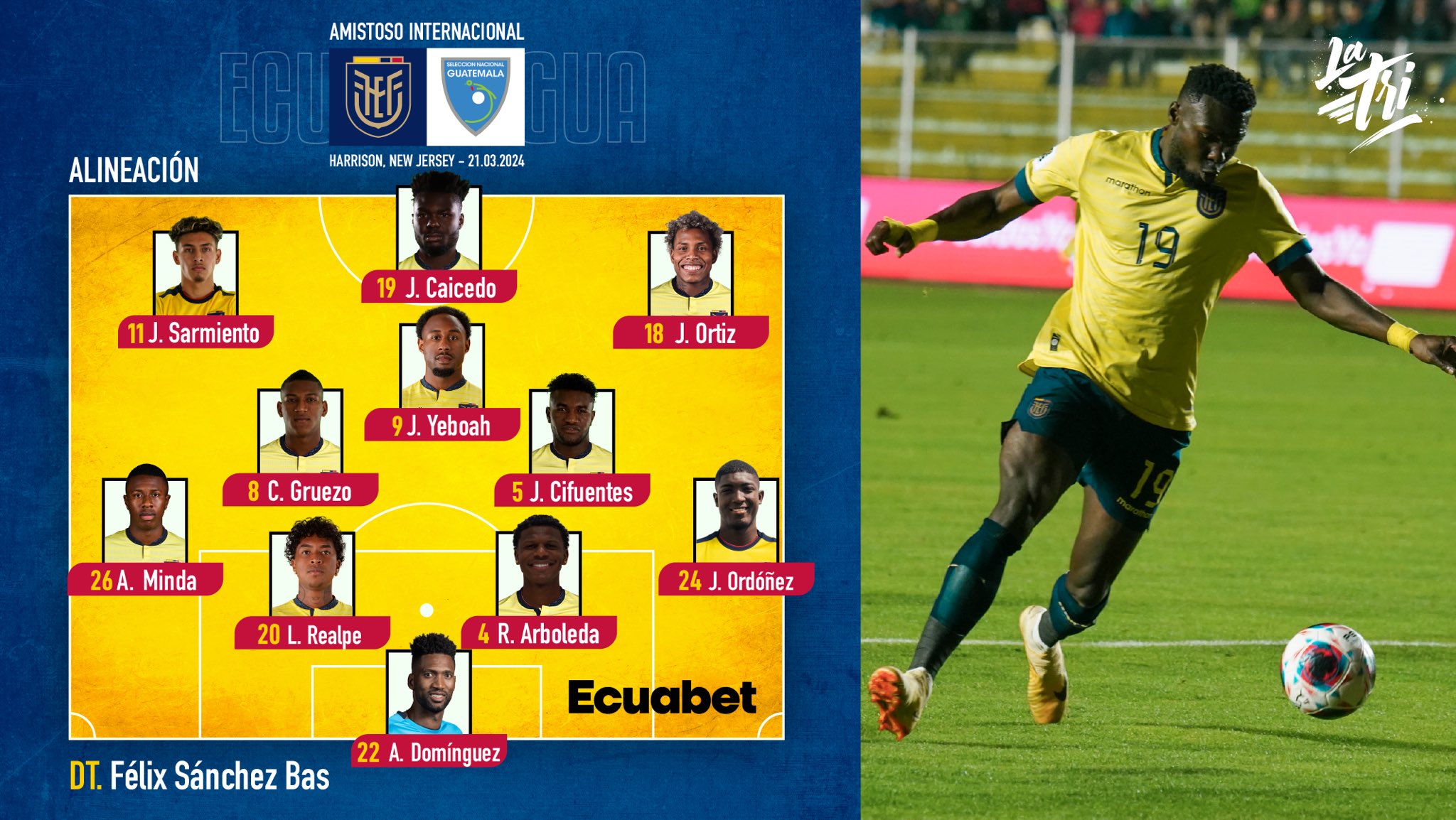 En este partido será el debut de John Yeboah, atacante ecuatoriano que milita en el RKS Raków Częstochowa de Polonia. El partido se desarrollará en New Jersey a las 19h30 (Hora de Ecaudor).