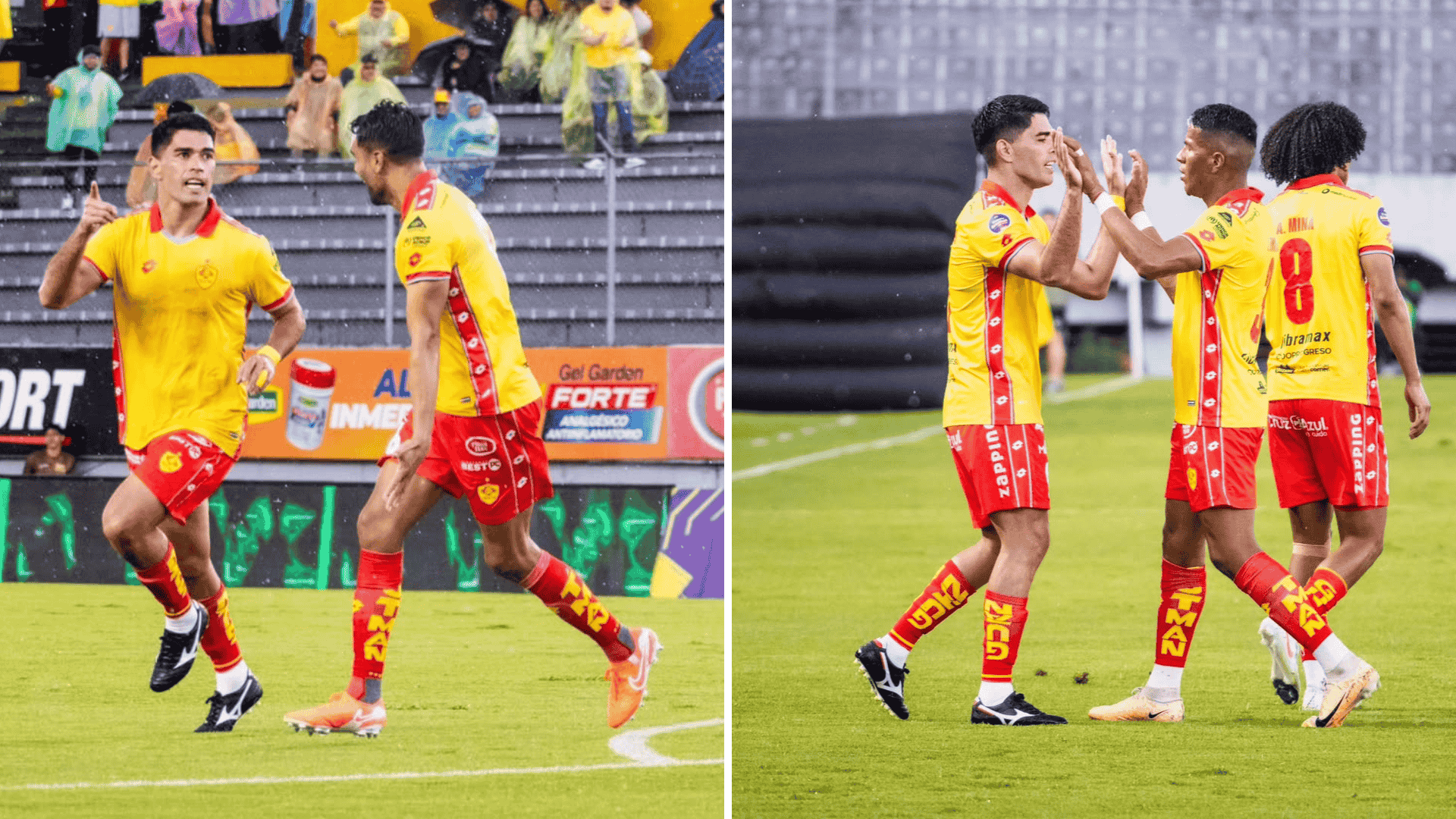 Al minuto 45, el paraguayo Brian Montenegro de cabeza hizo valer un centro que le envió su compañero Jonnathan Mina para marcar el primer gol de los locales.
