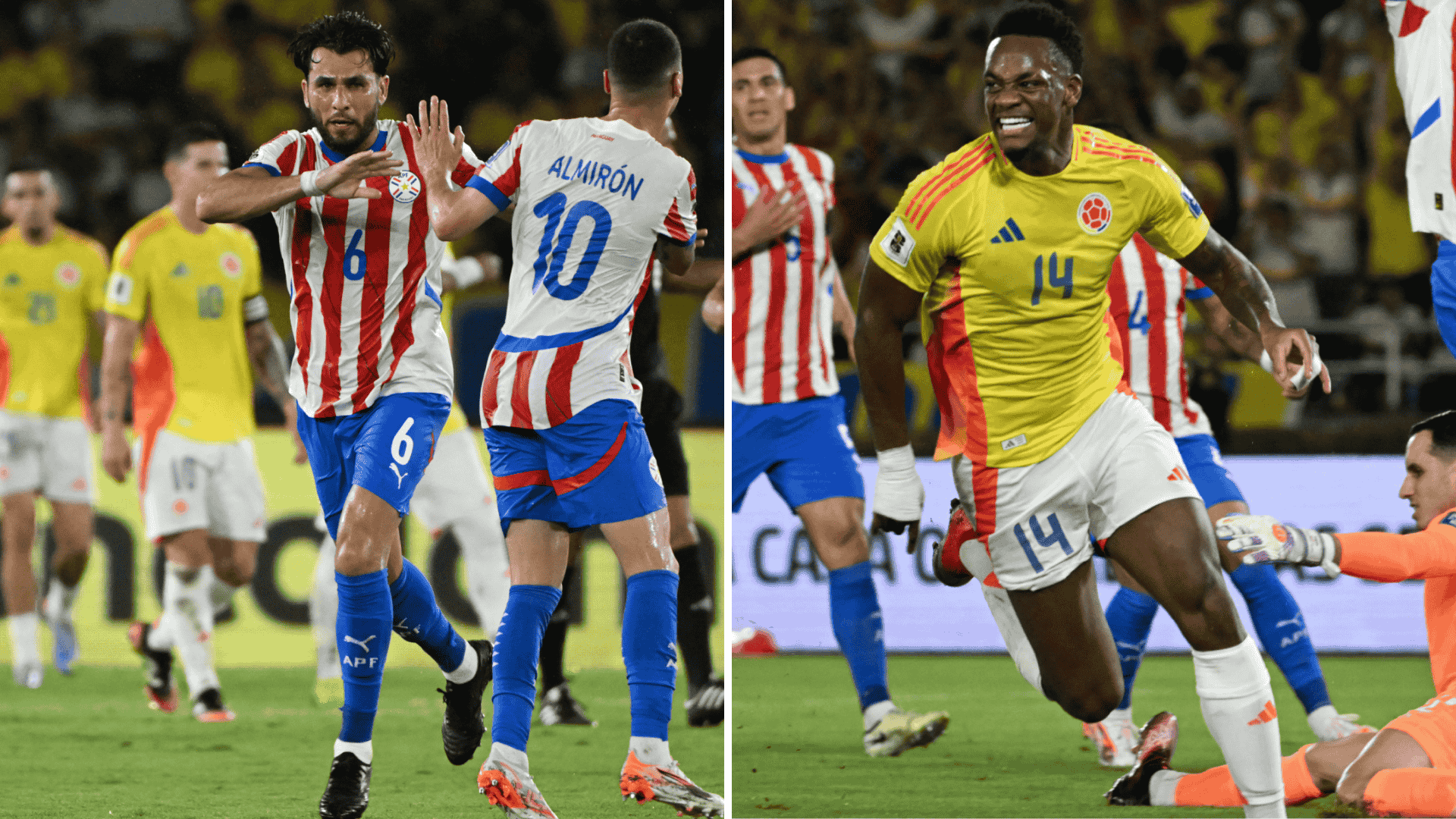 En un partido en donde ambas selecciones necesitaban los tres puntos, colombianos y paraguayos empataron 2-2 en Barranquilla por la fecha 14 de las Eliminatorias Conmebol.