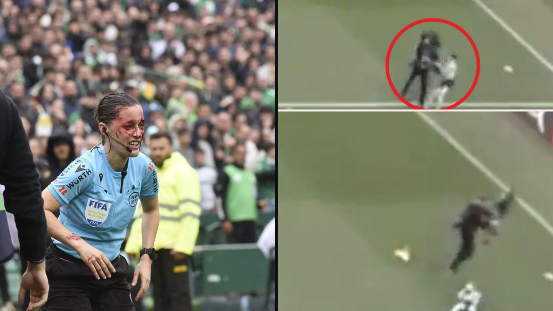 En el video grabado desde la tribuna, se ve el momento justo que el hombre cámara impacta contra la cabeza de la jueza de línea Guadalupe Porras, cuando esta corría de regreso a la mitad de cancha para convalidar el gol.