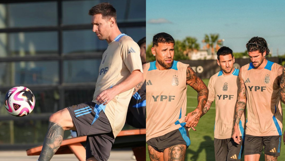 ‘La Pulga’ se sumó a la concentración de la Albiceleste que trabajó en la práctica vespertina en las instalaciones deportivas del Inter Miami. Por la tarde arribaron Di María, Otamendi, Nico González y Martínez Quarta.